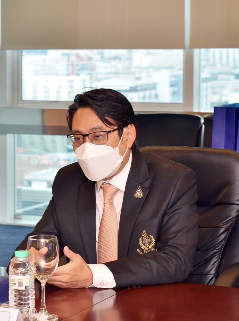 Dr. Sok Sokrethya ที่ปรึกษาส่วนตัว สมเด็จอัครมหาเสนาบดี เดโช ฮุนเซ็น นายกรัฐมนตรีราชอาณาจักรกัมพูชา ผู้แทนรัฐบาลกัมพูชา และรัฐมนตรีช่วยว่าการกระทรวงการท่องเที่ยว แห่งราชอาณาจักรกัมพูชา และรศ.ดร.สังศิต พิริยะรังสรรค์ ประธานคณะกรรมาธิการการแก้ปัญหาความยากจนและลดความเหลื่อมล้ำ วุฒิสภา พร้อมคณะที่ปรึกษา