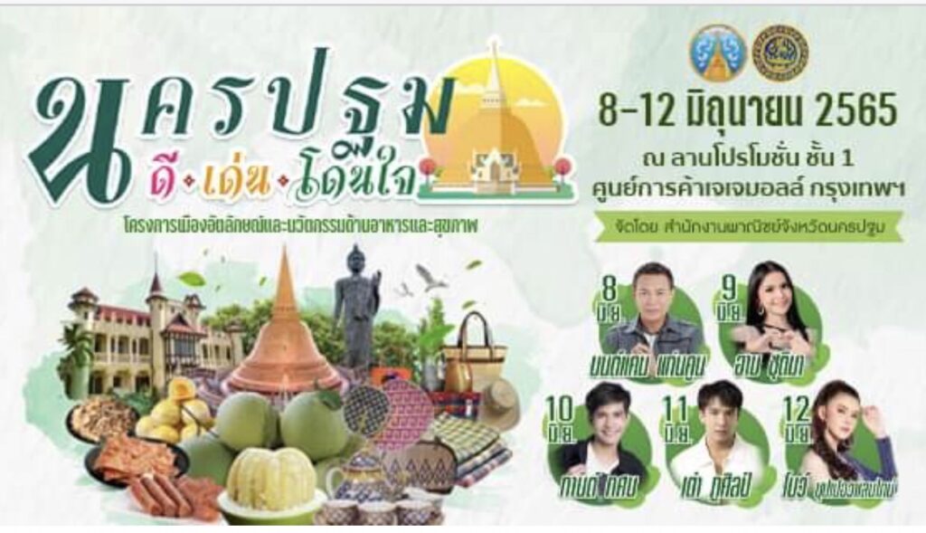 งาน นครปฐม ดี เด่น โดนใจ มีตั้งแต่วันที่ 8-12 มิถุนายน 2565 ที่ JJ Mall ลานโปโมชั่น ชั้น 1