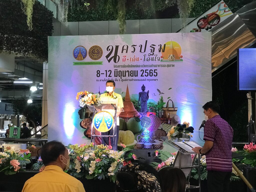 พิธีเปิดงานแสดงสินค้าโอทอปภายใต้ชื่องาน “นครปฐม ดี เด่น โดนใจ” ที่ เจเจ มอลล์ จตุจักร เมื่อวันที่ 9 มิถุนายน ที่ผ่านมา โดยบรรยากาศภายในงานประกอบด้วย