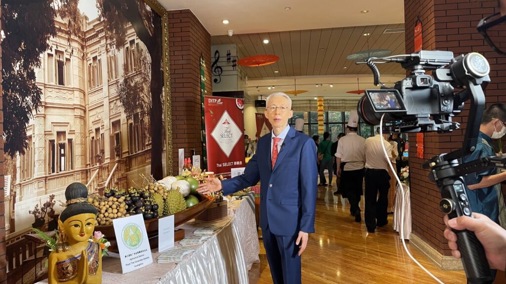 HEMA Network Technology Co.,Ltd. ซึ่งเป็นบริษัทในเครือ Alibaba) ในรูปแบบออนไลน์ และออฟไลน์ ก่อนหน้านี้สำนักงานที่ปรึกษาการเกษตรต่างประเทศ ประจำกรุงปักกิ่ง ร่วมกับ ซีพีเซ็นเตอร์ สำนักงานใหญ่เครือเจริญโภคภัณฑ์ เขตประเทศจีน สถานเอกอัครราชทูต ณ กรุงปักกิ่ง และสำนักงานการท่องเที่ยวแห่งประเทศไทย สำนักงานกรุงปักกิ่ง จัดงานเทศกาลสงกรานต์ ประจำปี ๒๕๖๕  ระหว่างวันที่ ๑๕-๑๙ เมษายน ๒๕๖๕  ณ ตึกซีพีเซ็นเตอร์ กรุงปักกิ่ง โดยสปษ.ปักกิ่ง ร่วมกับกรมหม่อนไหม มีการประชาสัมพันธ์ผ้าไหมของไทย โดยการเดินแฟชั่นโชว์ ร่วมกับการประชาสัมพันธ์ทุเรียนของไทยเพื่อเป็นการผสมผสานกิจกรรมและขยายตลาดสินค้าเกษตรของไทยในตลาดจีนค่ะ
