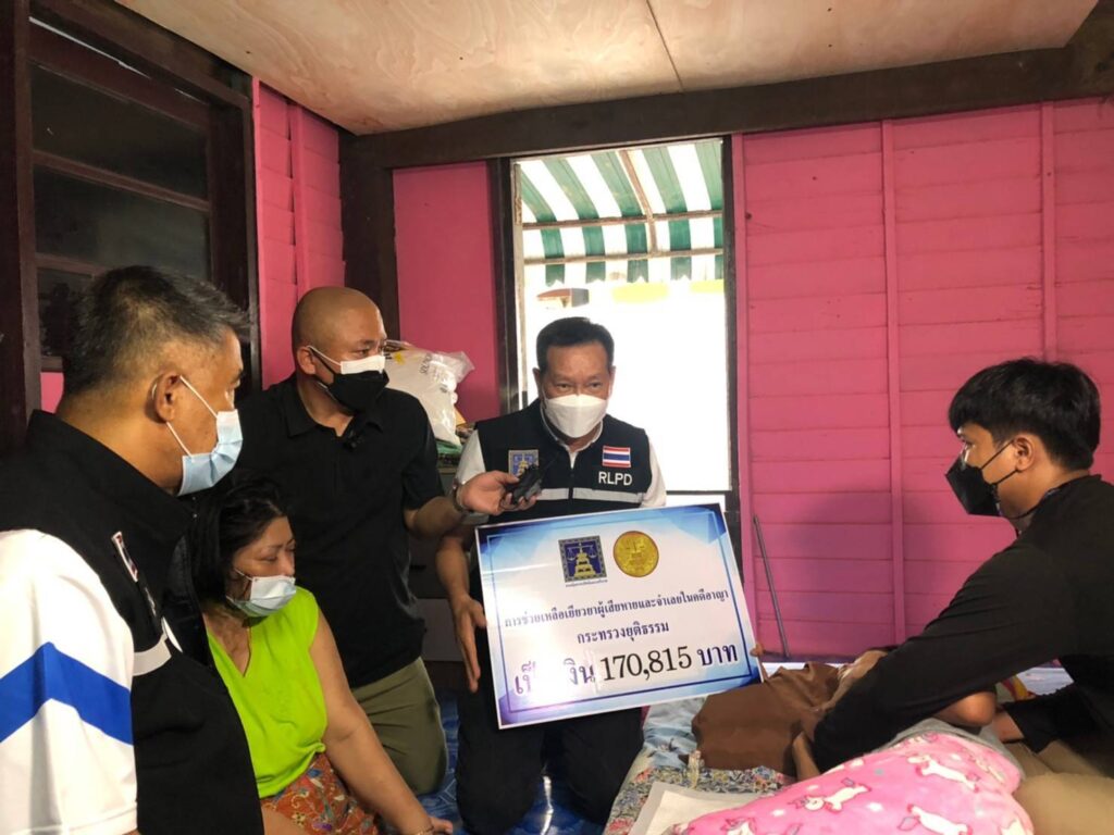 วันนี้ (วันพฤหัสบดีที่ 30 กันยายน 2564) เวลา 14.30 น. ณ บ้านเลขที่ 40/95 หมู่ 4 แขวงแสนแสบ เขตมีนบุรี กรุงเทพฯ ดร.โฆสิต สุวินิจจิต คณะที่ปรึกษารัฐมนตรีว่าการกระทรวงยุติธรรม พร้อมด้วย นายเรืองศักดิ์ สุวารี อธิบดีกรมคุ้มครองสิทธิและเสรีภาพ นายเกิดโชค เกษมวงศ์จิตร รองอธิบดีกรมคุ้มครองสิทธิและเสรีภาพ นางสาวจิฬาภรณ์ ตามชู กฤษณสุวรรณ ผู้อำนวยการสำนักงานช่วยเหลือทางการเงินแก่ผู้เสียหายและจำเลย ในคดีอาญา ข้าราชการ และเจ้าหน้าที่กรมคุ้มครองสิทธิและเสรีภาพ ลงพื้นที่มอบเงินเยียวยาแก่ผู้เสียหาย กรณี นายทิเบต ขอสงวนนามสกุล อายุ 18 ปี (ผู้บาดเจ็บ) พลเมืองดีถูกทำร้ายร่างกายได้รับบาดเจ็บสาหัส หลังช่วยเหลือตำรวจจับตัวชายอาการคลุ้มคลั่งจะทำร้ายผู้อื่น ซึ่งเหตุเกิดเมื่อวันที่ 31 พฤษภาคม 2564