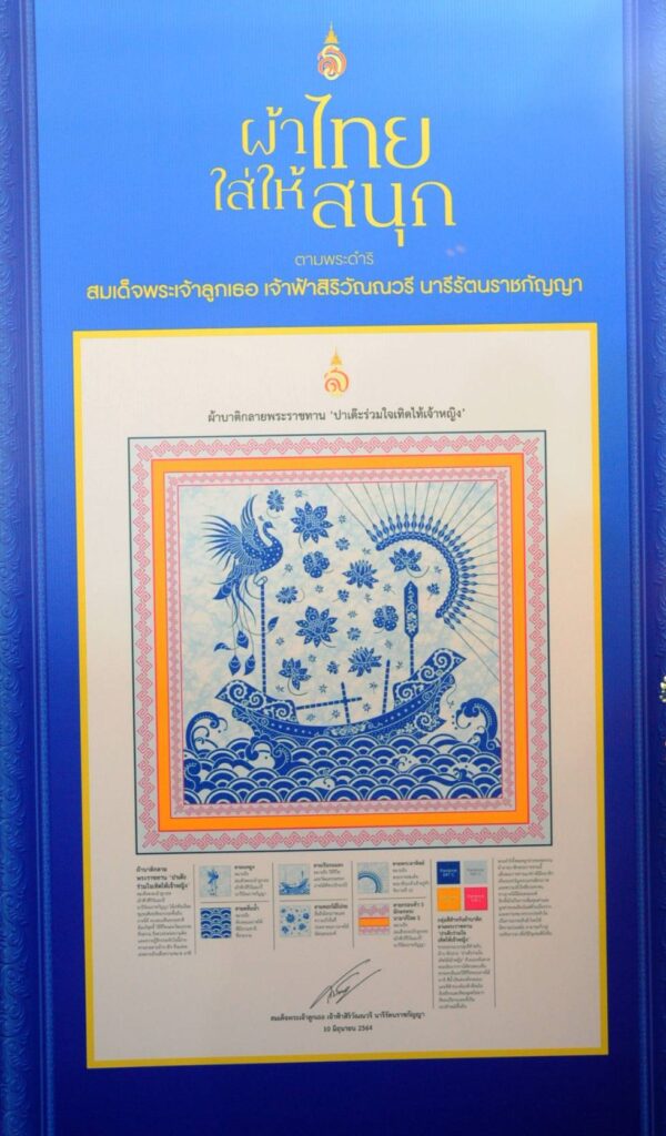 ผ้าบาติกลายพระราชทาน “ท้องทะเลไทย” ด้วยแรงบันดาลพระทัยในการอนุรักษ์สัตว์ทะเลและสิ่งแวดล้อมของท้องทะเลไทย สมเด็จพระเจ้าลูกเธอเจ้าฟ้าสิริวัณณวรี นารีรัตนราชกัญญา ทรงออกแบบลายผ้าบาติกพระราชทาน ‘ท้องทะเลไทย’ ด้วยทรงพระดำริ ให้เป็นการจุดประกายความคิดเพื่อให้ ผู้คนเกิดจิตสำนึกในการหวงแหนและรักษาทรัพยากรทางทะเลไทยอันมีค่า ลวดลายประกอบด้วย ลายกะละปังหา หมายถึง ต้นกะละปังหาที่แตกกิ่งก้านออกเป็นรูปพัด เป็นบ้านของสัตว์ทะเลหลายชนิด ,ลายม้าน้ำ ม้าน้ำที่ขดตัวเป็นอักษรพระนามาภิไธย S หมายถึง สมเด็จพระเจ้าลูกเธอ เจ้าฟ้าสิริวัณณวรี นารีรัตนราชกัญญา ,ลายคลื่น ลูกคลื่นที่ล้อไปกับอักษรพระนามาภิไธย S หมายถึง ความห่วงใยใน สิ่งแวดล้อมของ สมเด็จพระเจ้าลูกเธอ เจ้าฟ้าสิริวัณณวรี นารีรัตนราชกัญญา ,ลายดาวทะเล หมายถึง สัญลักษณ์ของความอุดมสมบูรณ์ของท้องทะเลไทย ,ลายขอบตัว S อักษรพระนามาภิไธย S หมายถึง สมเด็จพระเจ้าลูกเธอ เจ้าฟ้าสิริวัณณวรี นารีรัตนราชกัญญา