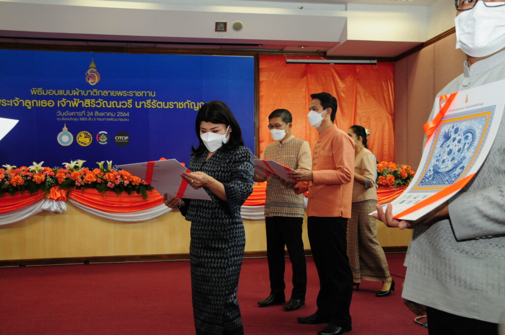 วันอังคารที่ 24 สิงหาคม 2564 เวลา 13.00 น. นายสุทธิพงษ์ จุลเจริญ เป็นประธานในพิธีรับมอบแบบผ้าบาติกลายพระราชทาน จำนวน 3 ลาย ได้แก่ “ปาเต๊ะร่วมใจเทิดไท้เจ้าหญิง” “ท้องทะเลไทย” และ “ป่าแดนใต้” สมเด็จพระเจ้าลูกเธอ เจ้าฟ้าสิริวัณณวรี นารีรัตนราชกัญญา ให้กับผู้ตรวจราชการกรม เบื้องหน้าพระรูปสมเด็จพระเจ้าลูกเธอ เจ้าฟ้าสิริวัณณวรี นารีรัตนราชกัญญา ณ ห้องประชุม 3003 ชั้น 3