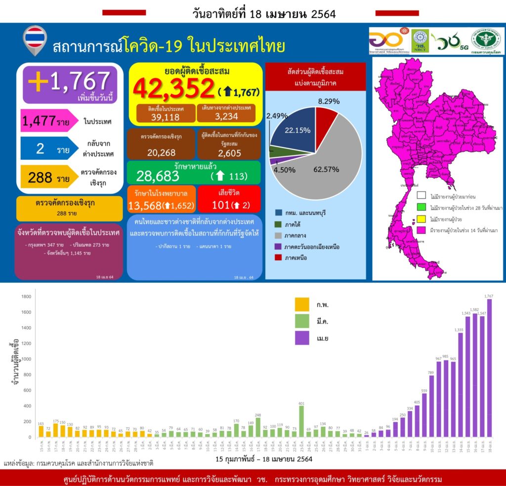 วันนี้มีผู้ติดเชื้อ 1,767 ราย