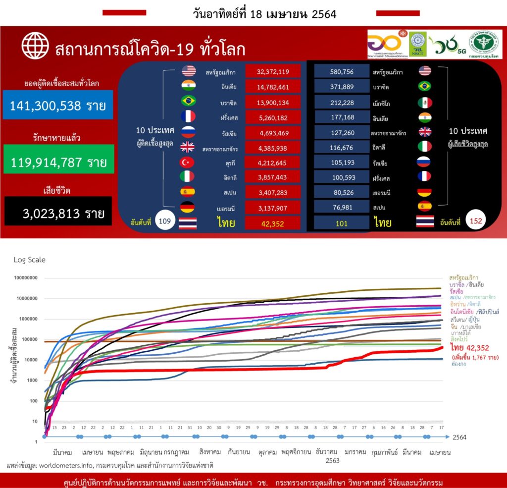 - ยอดผู้ติดเชื้อสะสมทั่วโลก 141 ล้านราย มีจำนวนผู้เสียชีวิตสะสมกว่า 3 ล้านราย