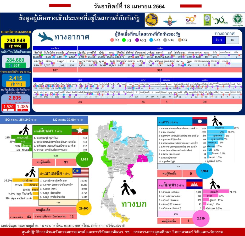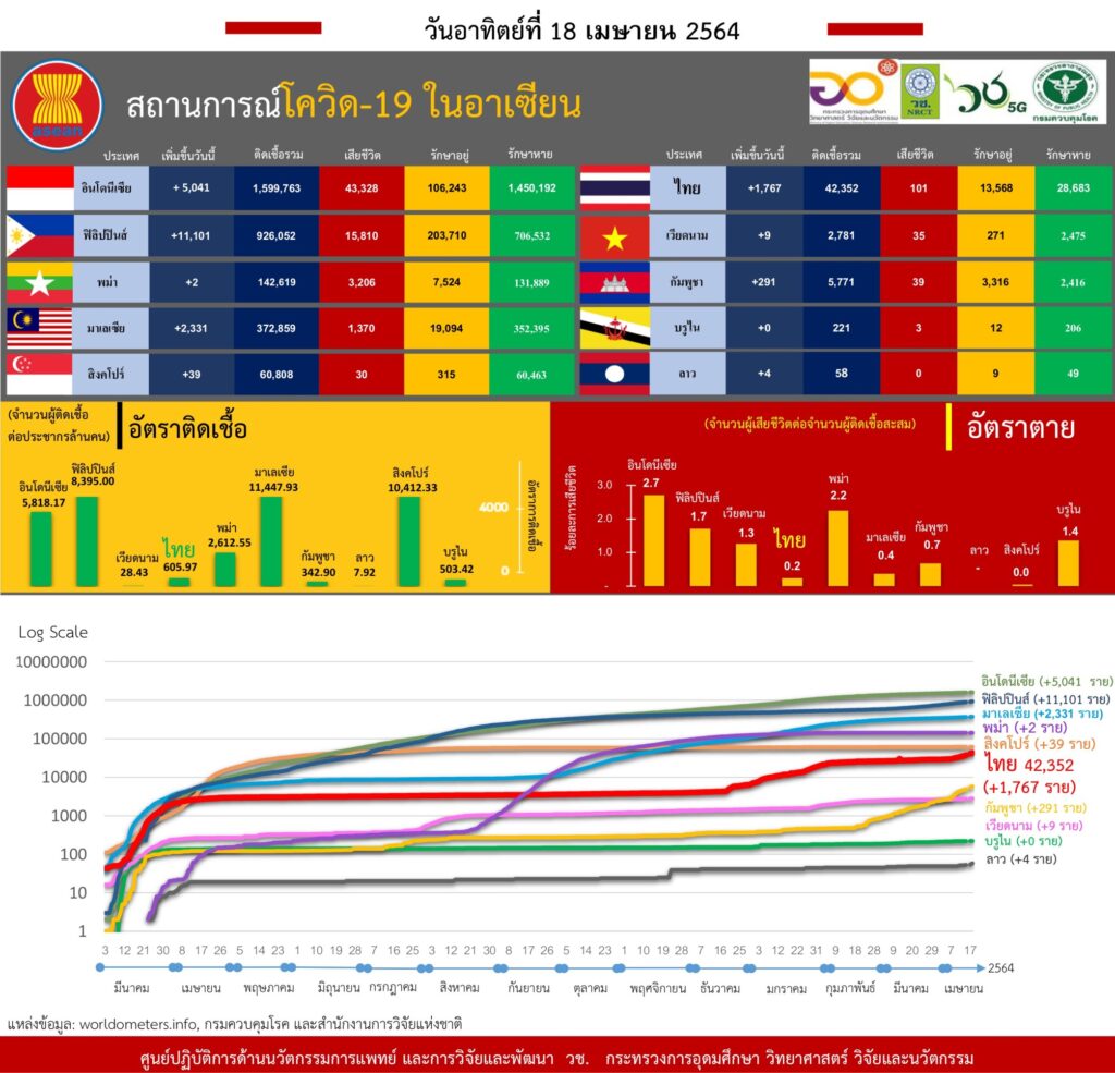 - ไทยมียอดผู้ติดเชื้อสะสมอยู่ที่อันดับ 109 และยอดผู้เสียชีวิตอยู่ที่อันดับ 152 ของโลก