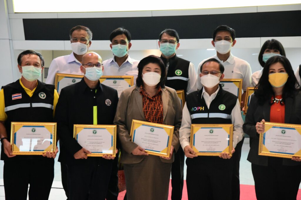 เมื่อวันที่ 30 กันยายน 2564 ดร.วิภารัตน์ ดีอ่อง ผู้อำนวยการสำนักงานการวิจัยแห่งชาติ เข้ารับประกาศเกียรติคุณหน่วยงานที่ร่วมสนับสนุนการดำเนินงานโรงพยาบาลบุษราคัม ที่เปิดเป็นโรงพยาบาลสนามรองรับผู้ป่วยโควิด-19 จากนายแพทย์เกียรติภูมิ วงศ์รจิต ปลัดกระทรวงสาธารณสุข ในพิธีปิดโรงพยาบาลบุษราคัม โดยมี นายแพทย์ธงชัย กีรติหัตถยากร รองปลัดกระทรวงสาธารณสุข