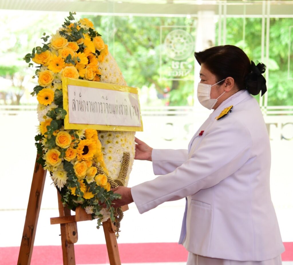 ดร.วิภารัตน์ ดีอ่อง ผู้อำนวยการสำนักงานการวิจัยแห่งชาติ เป็นประธานในพิธี พร้อมวางพวงมาลาน้อมรำลึกในพระมหากรุณาธิคุณฯ