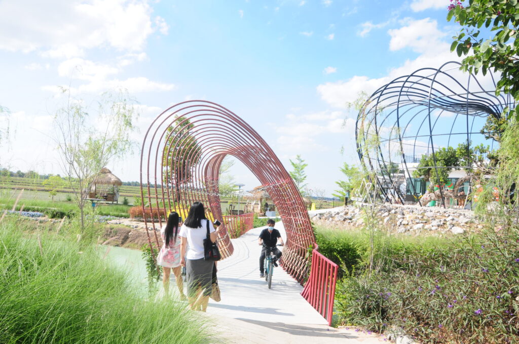 มีหอคอยให้ถ่ายรูปในมุมสูงที่มองเห็นภูเขาฟูจิเมืองไทยลิบๆ การทำทางเดินผ่านอุโมงไฟในช่วงยามค่ำจะสวยงามมากๆ และรูปแบบของตัวร้านจะครอบอยู่ในอุโมงผลไม้ มีสะพานเชือกทอดยาวออกไปยังทุ่งนา ให้เป็นจุดถ่ายรูปได้เป็นอย่างดี มีคูน้ำสวยงามและมีซุ้มเรือนหลังคาจากในแต่ละซุ้มให้นั่งทานอาหารและกาแฟ ขนมหลากรสรสชาติมีให้เลือกทานได้ตามใจปรารถนา ส่วนซิกเนเจอร์คือชามะนาวอัญชันที่แสนจะนุ่มละมูลลิ้น อร่อยไปกับอาหารหลากหลายรวมทั้งสะเต๊ะที่น่ากิน กาแฟที่แสนอร่อยๆ