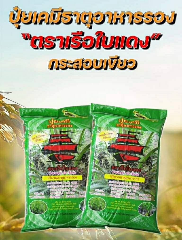 สำหรับปุ๋ยตราเรือใบแดงนั้น เป็นนวัตกรรมปุ๋ยเคมี ที่ประกอบด้วย ธาตุอาหารรอง ธาตุอาหารเสริม มีองค์ประกอบของสารอินทรีย์วัตถุ แร่ธาตุ ซิลิก้า ไคโตซาน สารเพิ่มประสิทธิภาพปุ๋ย และฮอร์โมนพืช ที่มีประสิทธิภาพสูง ช่วยปรับสภาพดินกรด ดินเปรี้ยว ดินดาน ทำให้พืชแตกรากดูดซับธาตุอาหารต่างๆได้เป็นอย่างดี ช่วยแก้ปัญหารากเน่า โคนเน่า ตายไม่รู้สาเหตุ ช่วยป้องกันปัญหาหน้ายางตาย ช่วยป้องกันเชื้อรา ช่วยแก้ปัญหาการขาดธาตุอาหารในพืชต่างๆ ลดปริมาณการใช้ปุ๋ยเคมีและยาปราบศัตรูพืช ช่วยเพิ่มขนาด น้ำหนัก เพิ่มผลผลิต และยังยั้งการเข้าทำลายของแมลงศัตรูพืชได้เป็นอย่างดี