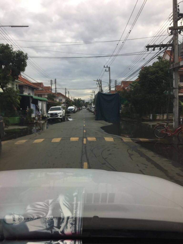 ขณะนี้6 ก.ย.น้ำลดแล้วครับพื้นถนนในหมู่บ้านน้ำแห้งแล้วแต่ยังต้องสูบประคองไว้เพราะนำ้ด้านนอกสูงกว่าในหมู่บ้านประมาณ30-40ซ.มครับ