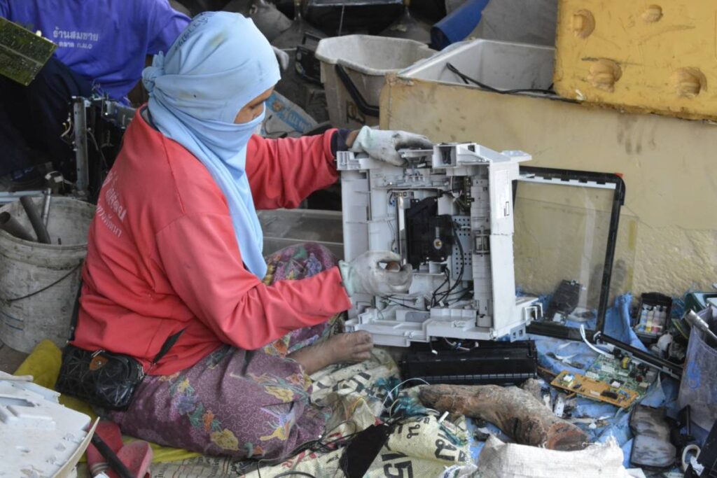 รศ.ดร.สุธา ขาวเธียร ผู้อำนวยการศูนย์ความเป็นเลิศด้านการจัดการสารและของเสียอันตราย (ศสอ.) กล่าวว่า แผนงานวิจัยการจัดการขยะอิเล็กทรอนิกส์และของเสียอันตรายชุมชน ระยะที่ 1 ได้ข้อสรุปสองส่วนคือ ส่วนที่หนึ่ง ได้ทราบปริมาณและประเภทของขยะอิเล็กทรอนิกส์ที่เกิดขึ้น ณ แหล่งกำเนิด โดยจากผลการประเมินปริมาณขยะอิเล็กทรอนิกส์ จำนวน 7 ชนิด ได้แก่ โทรทัศน์ ตู้เย็น เครื่องปรับอากาศ เครื่องซักผ้า คอมพิวเตอร์ตั้งโต๊ะ โน้ตบุ๊ก โทรศัพท์มือถือหรือแท็บเล็ต และของเสียอันตราย 2 ชนิด ได้แก่ หลอดไฟ และถ่านไฟฉาย ด้วยวิธี Consumption use model พบว่าขยะอิเล็กทรอนิกส์และของเสียอันตรายชุมชนทั้งประเทศ ในปี 2562 มีปริมาณ 607,575.75 ตันต่อปี ซึ่งมีปริมาณใกล้เคียงกับการคาดการณ์ของกรมควบคุมมลพิษ ทั้งนี้ จากการนำข้อมูลปริมาณขยะอิเล็กทรอนิกส์ที่ได้จากการประเมินมาประมวลผลรวมกับข้อมูลทางสถิติ เพื่อศึกษาผังการไหลการจัดการขยะอิเล็กทรอนิกส์จำนวน 7 ชนิด พบว่าขยะอิเล็กทรอนิกส์จากผู้ก่อกำเนิดจะถูกส่งต่อไปยังผู้เก็บรวบรวมและรื้อแยก โดยแบ่งการจัดการออกเป็น 2 กลุ่ม ได้แก่ การจัดการโดยโรงงานอุตสาหกรรม (ร้อยละ 28.00) และการจัดการขยะอิเล็กทรอนิกส์ โดยชุมชน (ร้อยละ 50.00) อย่างไรก็ตาม มีขยะอิเล็กทรอนิกส์บางส่วนที่ยังไม่ได้รับการจัดการ โดยจะถูกเก็บไว้ในส่วนของครัวเรือน ส่วนที่สอง ได้ทราบเกี่ยวกับวิธีการจัดการขยะอิเล็กทรอนิกส์โดยชุมชน ชุมชนรื้อแยกขยะอิเล็กทรอนิกส์กระจายอยู่ทั่วทุกภูมิภาคในประเทศไทย โดยชุมชนรื้อแยกขยะอิเล็กทรอนิกส์ขนาดใหญ่อยู่ในภาคตะวันออกเฉียงเหนือ เมื่อขยะอิเล็กทรอนิกส์เข้าสู่ชุมชน ผู้ประกอบการทำการรื้อแยกด้วยวิธีทางกายภาพ เพื่อให้ได้วัสดุที่สามารถนำไปขายต่อ ส่วนเศษวัสดุเหลือทิ้งจะถูกนำไปเผาหรือฝังกลบ ซึ่งไม่ถูกต้องตามหลักวิชาการ จากผลการศึกษาพบว่าขยะอิเล็กทรอนิกส์ทั้งหมดที่เข้าสู่พื้นที่ทั้งหมด สามารถรื้อแยกเป็นวัสดุที่ขายได้คิดเป็นร้อยละ 78 ได้แก่ เหล็ก พลาสติก ทองแดง อะลูมิเนียม สายไฟ แผงวงจร โลหะผสม และสแตนเลส และเศษวัสดุเหลือทิ้งคิดเป็นร้อยละ 22 ได้แก่ แก้ว พลาสติกทนความร้อน โฟมโพลียูรีเทน ยาง สารละลายน้ำเกลือ และสารทำความเย็น นอกจากนี้พบว่าในกระบวนการรื้อแยกและจัดการวัสดุบางประเภท เช่น การเผาสายไฟเพื่อให้ได้ทองแดง การทุบหน้าจอ CRT ในโทรทัศน์ เพื่อให้ได้เหล็ก และการกำจัดโฟมในตู้เย็นด้วยวิธีการเผา ทำให้เกิดการปนเปื้อนสู่สิ่งแวดล้อมและส่งผลต่อสุขภาพของชาวบ้านในชุมชน ซึ่งสอดคล้องกับผลการศึกษาสิ่งแวดล้อมด้านอากา