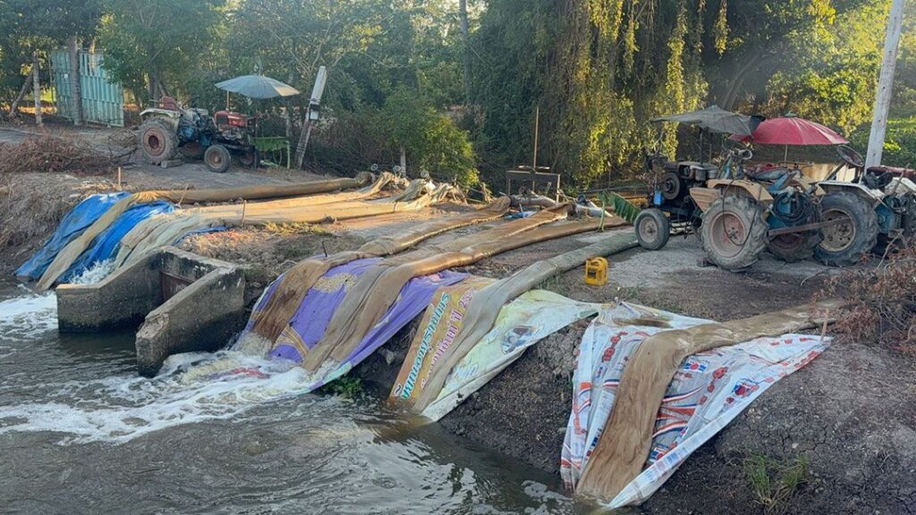 เกษตรกรจังหวัดอ่างทองระดมเครื่องสูบฯ เคลียร์พื้นที่นาที่รับน้ำท่วม เพื่อเก็บเกี่ยวหลังออกรวง