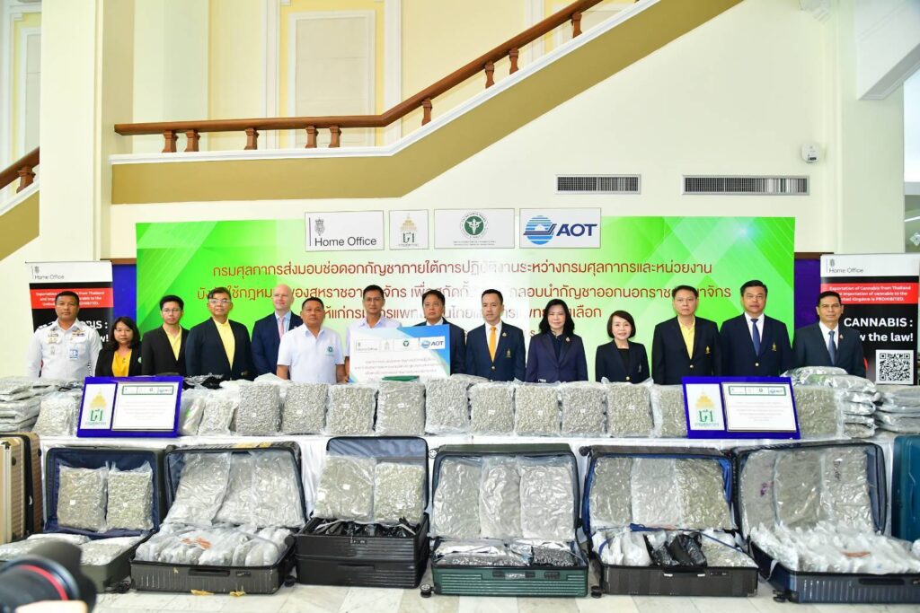 กรมศุลกากรส่งมอบช่อดอกกัญชาภายใต้การปฏิบัติงานระหว่างกรมศุลกากรและหน่วยงานบังคับใช้กฎหมายของสหราชอาณาจักร ให้แก่กรมการแพทย์แผนไทยและการแพทย์ทางเลือก