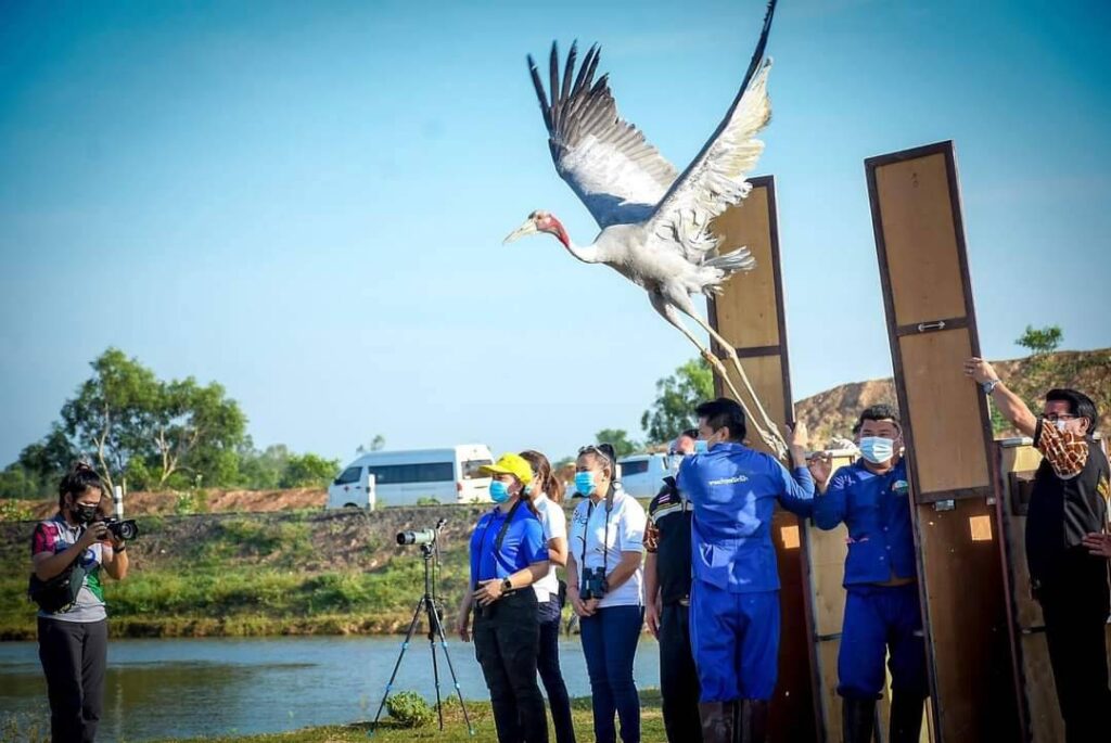 องค์การสวนสัตว์แห่งประเทศไทยในพระบรมราชูปถัมภ์ นำนกกระเรียนพันธุ์ไทย 14 ตัว ที่สวนสัตว์นครราชสีมา เพาะเลี้ยงและฝึกนำมาปล่อยคืนสู่ธรรมชาติ