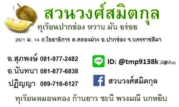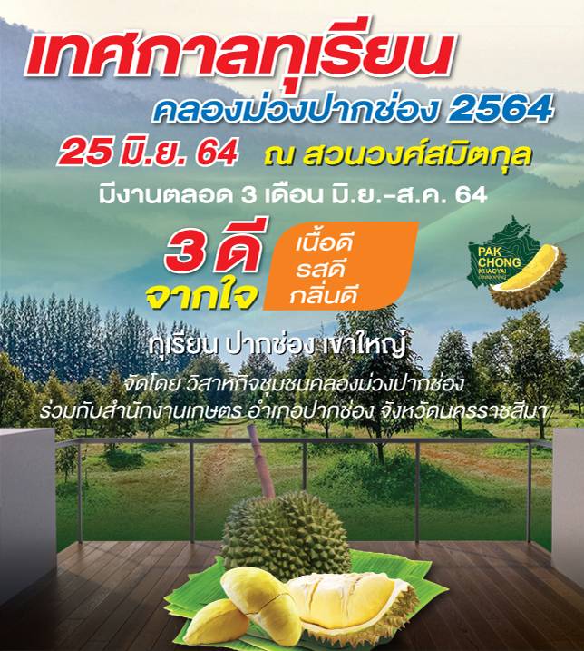 วิสาหกิจชุมชนทุเรียนคลองม่วงปากช่อง ร่วมกับสำนักงานเกษตรอำเภอปากช่อง จังหวัดนครราชสีมา จัดงานเทศกาลทุเรียนคลองม่วงปากช่อง 2564 Khlong Muang Pakchong Durian Festival 2021