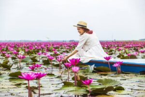 นักท่องเที่ยวไทย-เทศแห่เที่ยวทะเลแดงบึงหนองหาน “ตามรอยลิซ่า”