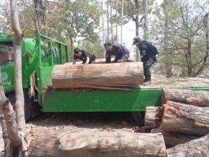 เจ้าหน้าที่สนธิกำลังร่วมลุยยึดไม้เถื่อนกลางไร่ข้าวโพดในเขตป่าสงวนแม่สอด
