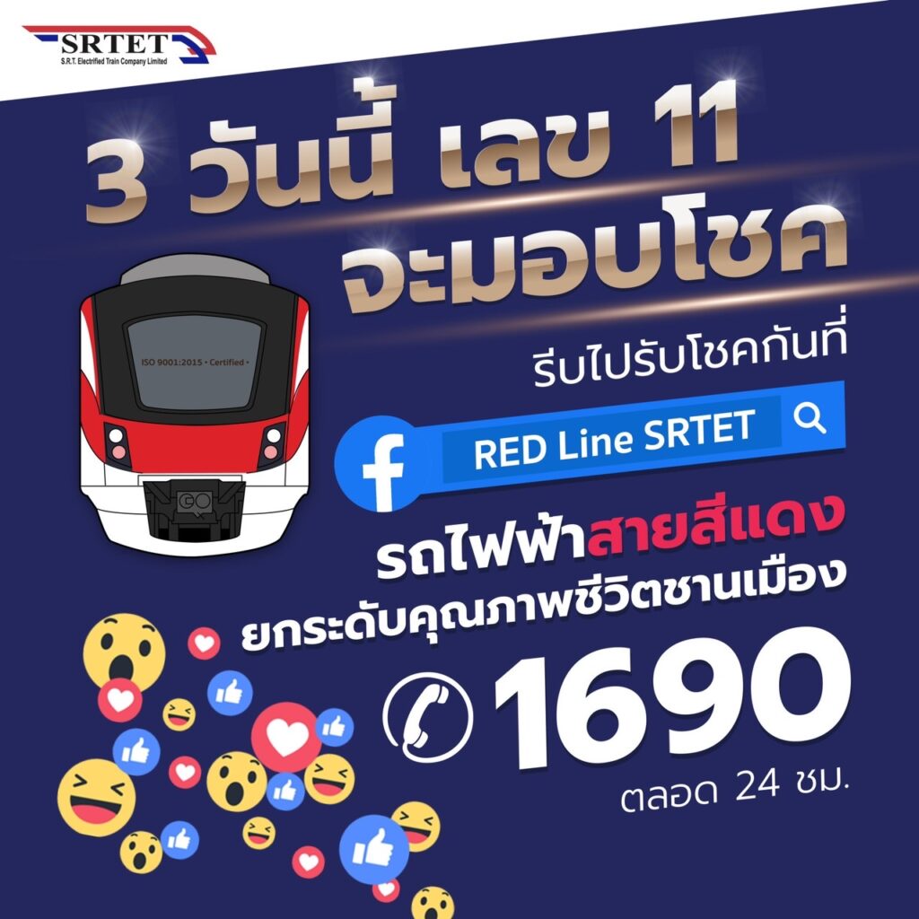 บริษัท รถไฟฟ้า ร.ฟ.ท. จำกัด ผู้ให้บริการรถไฟฟ้าชานเมืองสายสีแดงครบรอบปีที่ 11 ด้วยมาตรฐานการให้บริการระดับสากล และการเสริมทัพช่องทางติดต่อและติดตามข่าวสารในสื่อสังคมออนไลน์ทุกแพลตฟอร์ม เพื่อยกระดับประสิทธิภาพการให้บริการ พร้อมจัดกิจกรรมส่งเสริมการตลาดออนไลน์และออฟไลน์ให้แก่ผู้โดยสารได้ลุ้นรับรางวัลเป็นประจำทุกเทศกาล