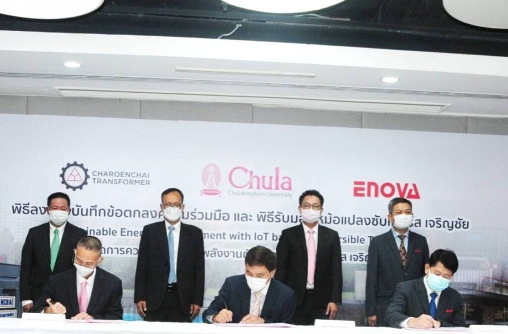 เมื่อวันที่ 9 กุมภาพันธ์ 2565 ได้มีการลงนามความร่วมมือระหว่าง จุฬาลงกรณ์มหาวิทยาลัย บริษัทเจริญชัยหม้อแปลง ไฟฟ้า จํากัด และบริษัท อีโนวา อินทิเกรชั่น จำกัด โดยมี รศ.ดร.วิศณุ ทรัพย์สมพล รองอธิการบดี ด้านการจัดการทรัพย์สินและกายภาพ จุฬาลงกรณ์มหาวิทยาลัย นายประสิทธิ์ กิตติรัตนวิวัฒน์ รองกรรมการผู้จัดการ บริษัทเจริญชัยหม้อแปลง ไฟฟ้า จํากัด นายนพชัย ถิรทิตสกุล ประธานกรรมการเจ้าหน้าที่บริหาร บริษัท อีโนวา อินทิเกรชั่น จำกัด เป็นผู้ลงนาม มี นายกิตติกร โล่ห์สุนทร ประธานคณะกรรมาธิการการพลังงาน สภาผู้แทนราษฎร นายชัยยันต์ ผลสุวรรณ์ เลขานุการคณะกรรมาธิการพลังงาน ดร.วัชรพงศ์ คูวิจิตรสุวรรณ เลขานุการรัฐมนตรีว่าการกระทรวงสาธารณสุข เป็นสักขีพยาน