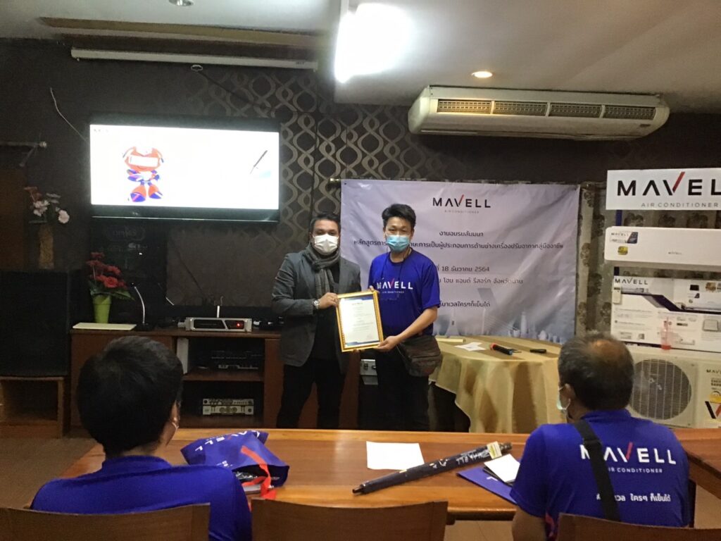 เมื่อวันที่ 18 ธันวาคม 2564 ณ สุขไทย โฮม แอนด์ รีสอร์ท จ.น่าน บริษัท มาเวล คอร์ปอเรชั่น จำกัด นำโดยนายปริญญา มานวงค์ กรรมการผู้จัดการ พร้อมด้วยอ.คณิศร สาจันทึก ที่ปรึกษาด้านเทคนิคและบริการหลังการขาย นายสมมาตร เชยเดช ผู้จัดการฝ่ายเซอร์วิส ได้จัดสัมมนา “การพัฒนาทักษะการเป็นผู้ประกอบการด้านช่างเครื่องปรับอากาศสู่มืออาชีพ” ให้กับช่างเครื่องปรับอากาศในพื้นที่จังหวัดน่านจำนวนกว่า 50 คน