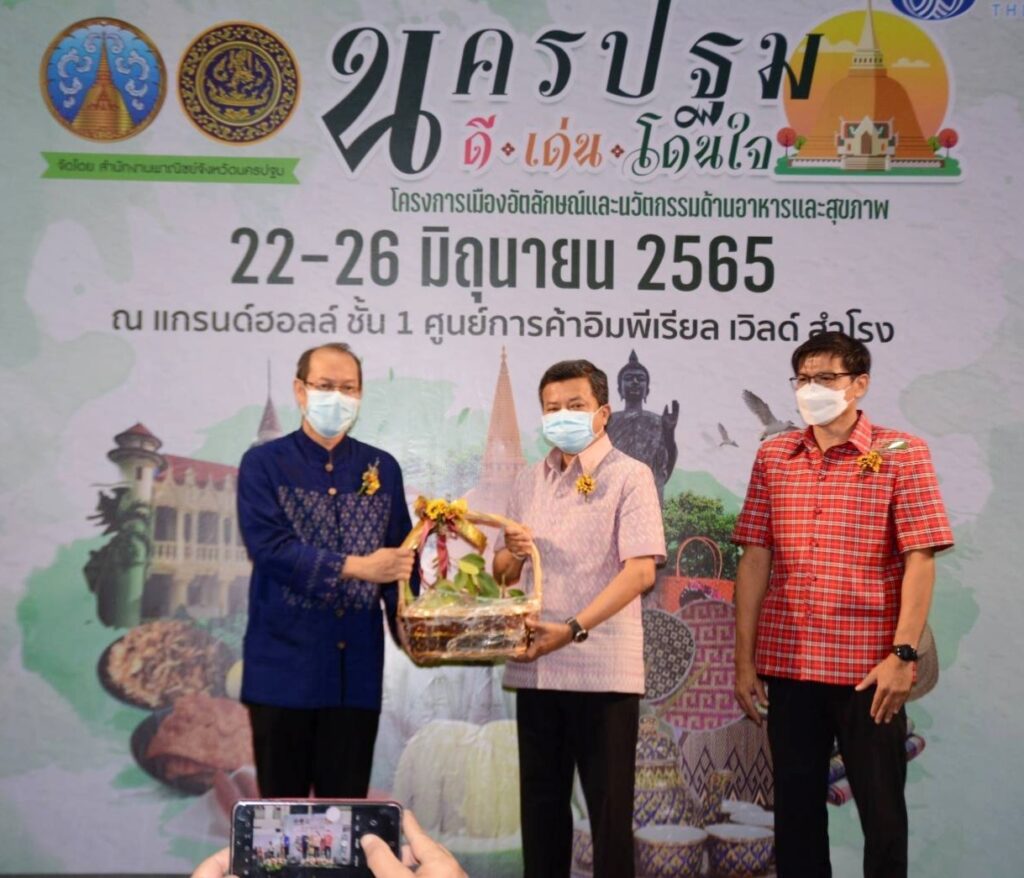 สำนักงานพาณิชย์จังหวัดนครปฐม จัดงาน “นครปฐม ดี เด่น โดนใจ” โครงการเมืองอัตลักษณ์และนวัตกรรมด้านอาหาร และสุขภาพ โดยนำสินค้าโอท็อปจากจังหวัดนครปฐมมาจัดแสดงและจำหน่าย ณ แกรนด์ฮอลล์ ชั้น 1 ศูนย์การค้าอิมพีเรียล เวิลด์ สำโรง จังหวัดสมุทรปราการ ตั้งแต่วันที่ 22 – 26 มิถุนายน 2565