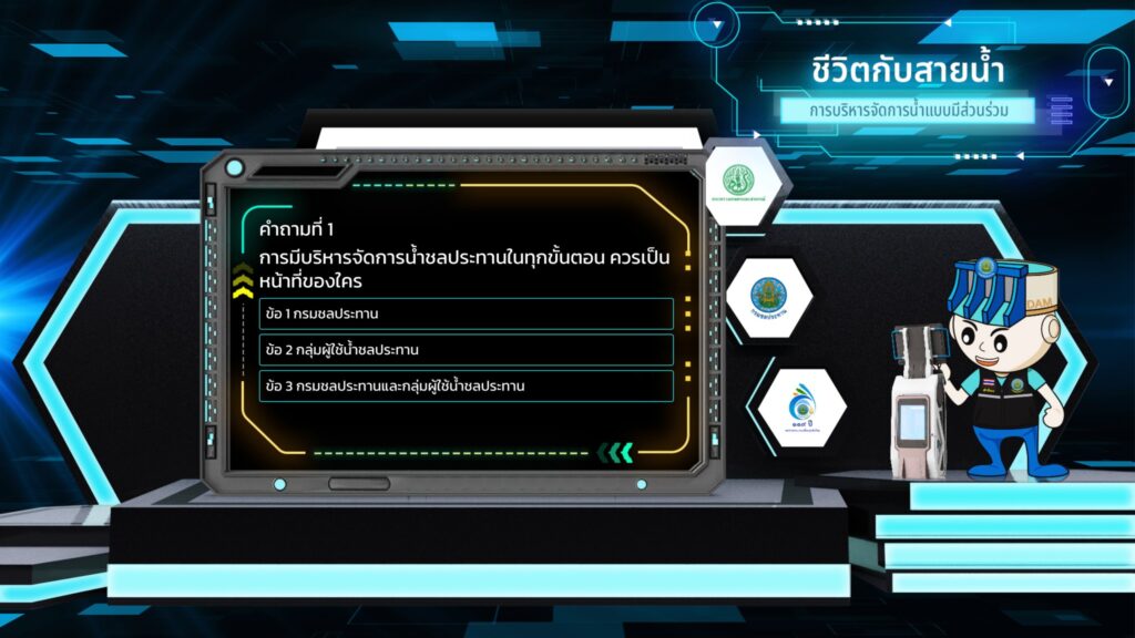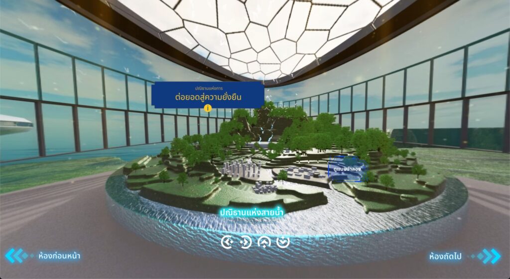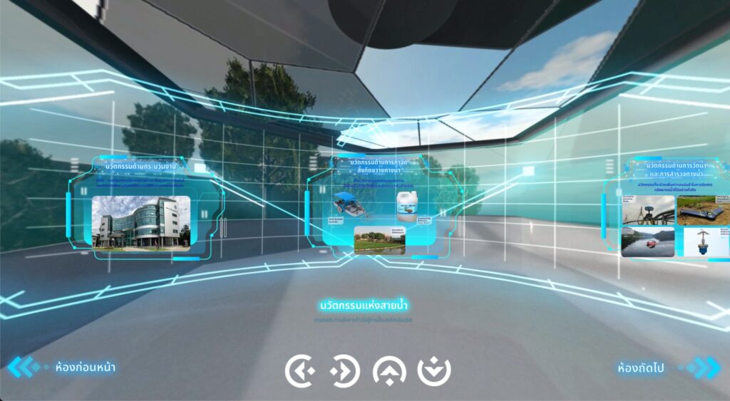 การจัดการน้ำอย่างสมดุลเป็นสิ่งสำคัญที่ต้องอาศัยการมีส่วนร่วมจากทุกภาคส่วน และ โซนที่ 5 : นวัตกรรมแห่งสายน้ำ กรมชลประทานกับการก้าวไปสู่การเป็นองค์กรอัจฉริยะ นำเสนอนวัตกรรมเด่นที่จะนำพาให้ กรมชลประทานก้าวไปสู่ความเป็นองค์กรอัจฉริยะ 4.0 ผ่านเทคนิควิดีโอ 360 องศาเสมือนจริง อาทิ กระบวนการสำรวจภาคพื้นดินด้วยสัญญานดาวเทียม กระบวนการสำรวจพื้นผิวน้ำ ด้วยเทคโนโลยี Echo Sounder แบบ Multi beam กระบวนการสำรวจทางอากาศโดยใช้เทคโนโลยีการถ่ายภาพทางอากาศ เป็นต้น