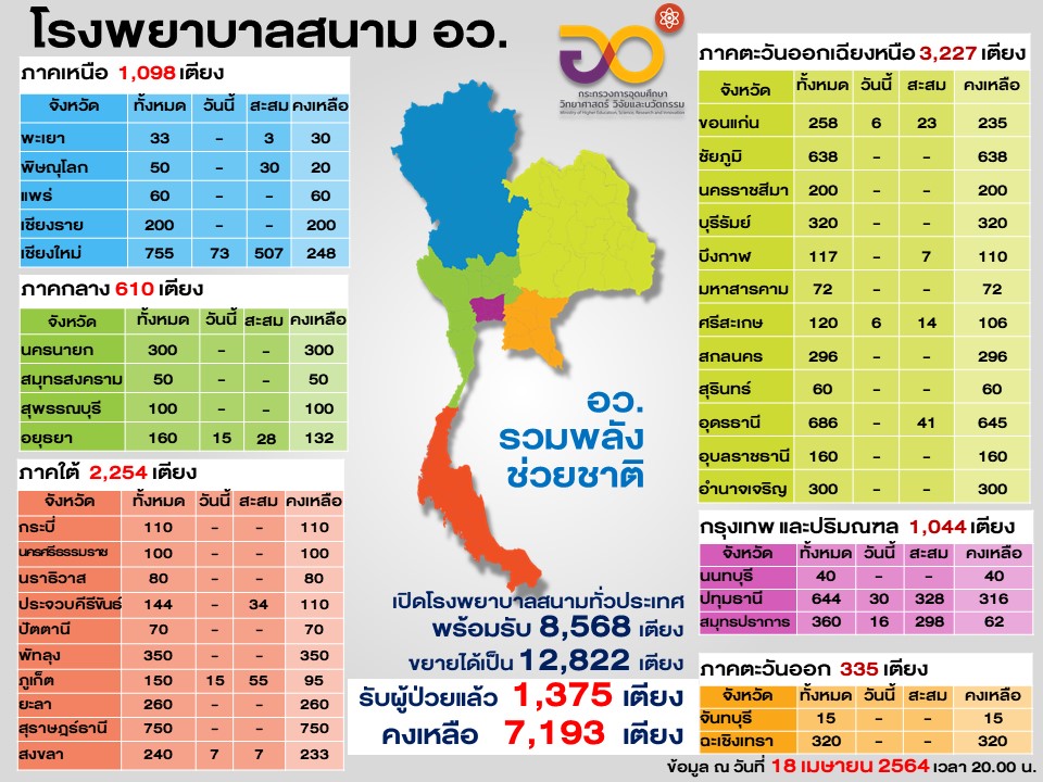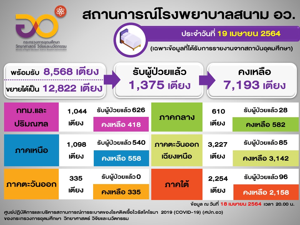สถานการณ์โรงพยาบาลสนามในสังกัด อว. (ประจำวันที่ 19 เมษายน 2564)