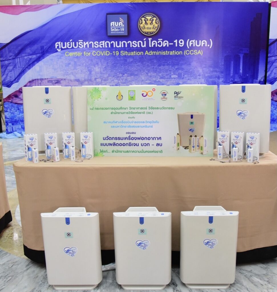 กระทรวงการอุดมศึกษา วิทยาศาสตร์ วิจัยและนวัตกรรม (อว.) ส่งมอบ “นวัตกรรมเครื่องฟอกอากาศแบบผลิตออกซิเจน บวก-ลบ” นวัตกรรมที่ได้รับทุนสนับสนุนจากสำนักงานการวิจัยแห่งชาติ (วช.) ดำเนินการ โดยสมาคมกีฬาเครื่องบินจำลองและวิทยุบังคับ และมหาวิทยาลัยสงขลานครินทร์ เพื่อร่วมรับมือการระบาดของโรคติดเชื้อไวรัสโคโรนา 2019 หรือ โควิด-19