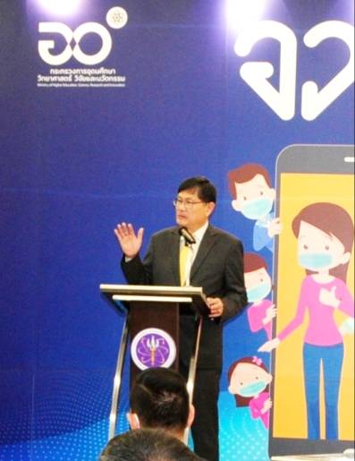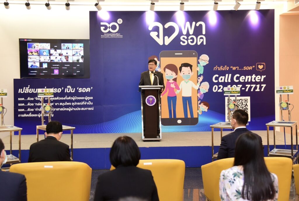 กระทรวงการอุดมศึกษา วิทยาศาสตร์ วิจัยและนวัตกรรม (อว.) โดย กรมวิทยาศาสตร์บริการ (วศ.) จัดพิธีส่งมอบหุ่นยนต์บังคับขนาดเล็กสำหรับใช้ในการส่งอาหารและเวชภัณฑ์ให้กับผู้ป่วยติดเชื้อโควิด-19 แก่โรงพยาบาล 6 แห่ง โดยมี ศาสตราจารย์ (พิเศษ) ดร.เอนก เหล่าธรรมทัศน์ รัฐมนตรีว่าการกระทรวงการอุดมศึกษา วิทยาศาสตร์ วิจัยและนวัตกรรม เป็นประธานการส่งมอบ พร้อมด้วย ศาสตราจารย์ นายแพทย์ ดร.สิริฤกษ์ ทรงศิวิไล ปลัดกระทรวงการอุดมศึกษา วิทยาศาสตร์ วิจัยและนวัตกรรม ผู้ช่วยศาสตราจารย์ ดร.ดวงฤทธิ์ เบ็ญจาธิกุล ชัยรุ่งเรือง เลขานุการรัฐมนตรีว่าการกระทรวงการอุดมศึกษา วิทยาศาสตร์ วิจัยและนวัตกรรม นายแพทย์ปฐม สวรรค์ปัญญาเลิศ อธิบดีกรมวิทยาศาสตร์บริการ (วศ.) ดร.วิภารัตน์ ดีอ่อง ผู้อำนวยการสำนักงานการวิจัยแห่งชาติ (วช.) และคณะผู้บริหารหน่วยงาน อว. เข้าร่วมงาน