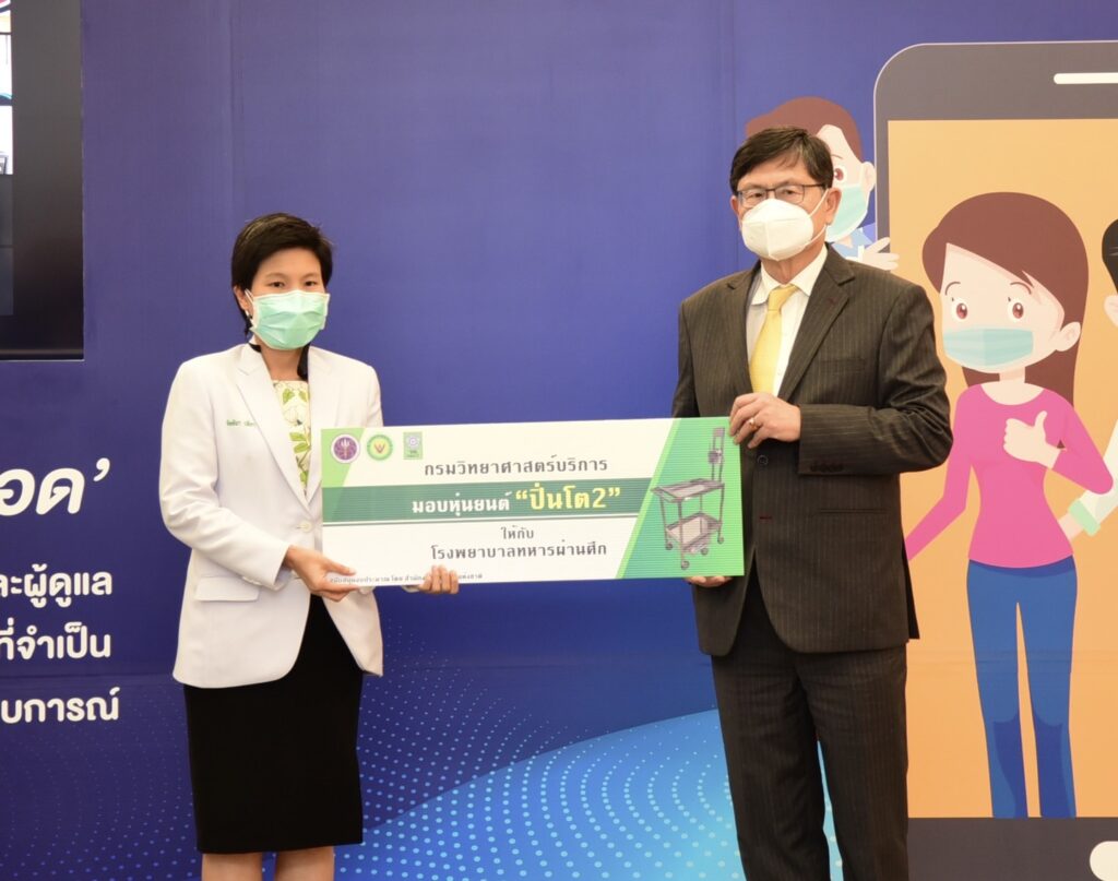 การเปิดกิจกรรมการส่งการมอบหุ่นยนต์ปิ่นโต 2 จำนวน 80 ตัว ให้แก่โรงพยาบาลในกรุงเทพและปริมณฑลและจังหวัดใกล้เคียงที่มีความจำเป็นในการใช้หุ่นยนต์ช่วยส่งอาหารและเวชภัณฑ์ในการดูแลผู้ป่วย โดยเฉพาะการดูแลรักษาผู้ป่วยที่ติดเชื้อโควิด-19 โดยมี สำนักงานการวิจัยแห่งชาติ เป็นผู้สนับสนุนทุนพัฒนาให้กับกรมวิทยาศาสตร์บริการ ในการพัฒนา “หุ่นยนต์ปิ่นโต 2” ดังกล่าว เพื่อลดการสัมผัสเชื้อโรคติดต่ออันตรายและช่วยลดปริมาณการใช้งานอุปกรณ์ป้องกันต่างๆ เช่น ชุด PPE เป็นต้น