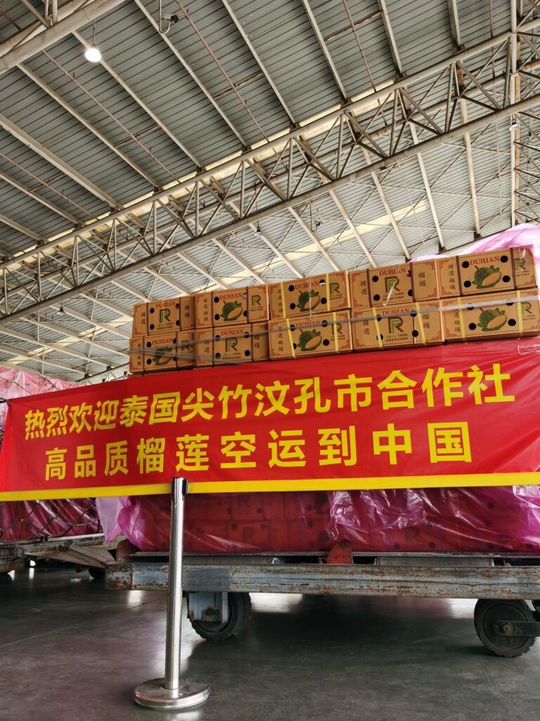 นายอลงกรณ์ พลบุตร ที่ปรึกษารัฐมนตรีว่าการกระทรวงเกษตรและสหกรณ์ ในฐานะประธานที่ประชุมคณะกรรมการพัฒนาและบริหารจัดการผลไม้ (Fruit Board) เปิดเผยวันนี้ (28 เม.ย.)ว่า เครื่องบินเช่าเหมาลำของสายการบินเซินเจิ้นแอร์ไลน์ที่นำทุเรียนเกรดพรีเมี่ยม20ตันจากสหกรณ์เมืองขลุง จังหวัดจันทบุรีเดินทางถึงที่สนามบินเซินเจิ้นแล้วเมื่อเช้ามืดวันนี้โดยผู้ประกอบการจีนได้จัดส่งแบบ Delivery ถึงลูกค้าซึ่งสั่งซื้อล่วงหน้าทันที