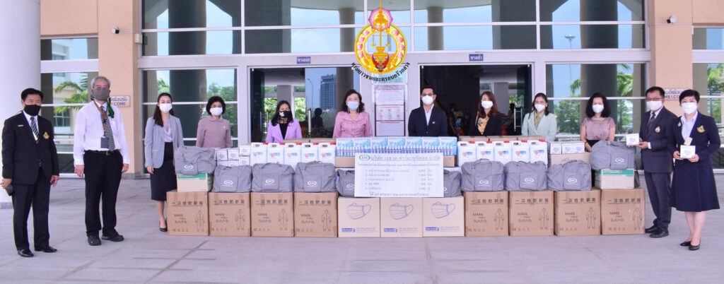 นางอโนชา ชีวิตโสภณ อธิบดีผู้พิพากษาศาลเยาวชนและครอบครัวกลาง (กลาง) รับมอบหน้ากากอนามัย จำนวน 6,000 ชิ้น แอลกอฮอล์น้ำ ขนาด 5 ลิตร จำนวน 200 ลิตร ชุด PPE จำนวน 400 ชุด ถุงมือยาง จำนวน 1,000 คู่ และแอลกอฮอล์สเปรย์ ขนาด 60 มล.จำนวน 900 ขวด
