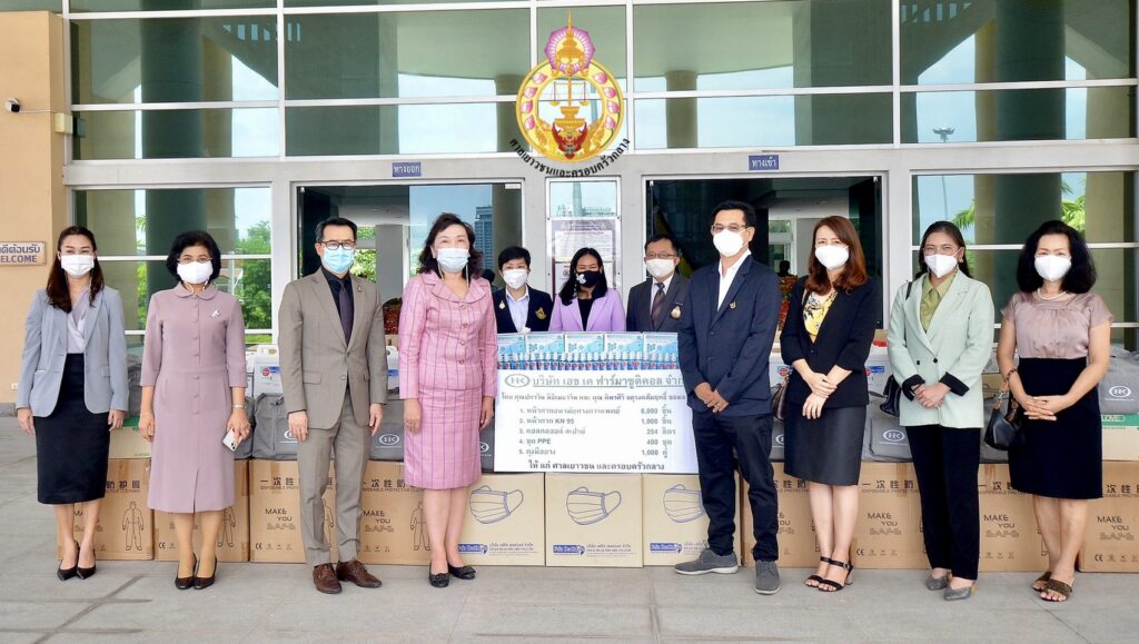 จาก นายปภาวิน นิธิเมธาวิน กรรมการผู้จัดการ และนางทิพาศิริ. จตุรงคสัมฤทธิ์. กรรมการผู้จัดการ บริษัท เอช. เค. ฟาร์มาซูติคอล จำกัด เพื่อใช้เป็นอุปกรณ์ป้องกันการแพร่กระจายของเชื้อไวรัสโควิด-19 ให้แก่ผู้พิพากษา ผู้พิพากษาสมทบ ข้าราชการ เจ้าหน้าที่และประชาชนที่มาติดต่อศาลฯ โดยมี นายพงษ์เดช วานิชกิตติกูล เลขาธิการสำนักงานศาลยุติธรรม. นางอุไรรัตน์ น้อยสุวรรณ รองอธิบดีฯ, นายภัทรศักดิ์ ศิริสินธว์ รองอธิบดีฯ, นางวิรา กายะจิ ณ พิกุล รองอธิบดีฯ, นางสาวอัมภัสชา ดิษฐอำนาจ เลขานุการศาลฯ นายสุรเกียรติ อุทัยเชฏฐ์ ผู้อำนวยการสำนักอำนวยการประจำศาลฯ. ดร.ปัณฑิพาณ์. ธาราภิบาล ผู้พิพากษาสมทบ และคณะผู้พิพากษาสมทบศาลเยาวชนและครอบครัวกลาง. ร่วมให้เกียรติรับมอบ ณ ศาลเยาวชนและครอบครัวกลาง กรุงเทพฯ เมื่อเร็ว ๆ นี้