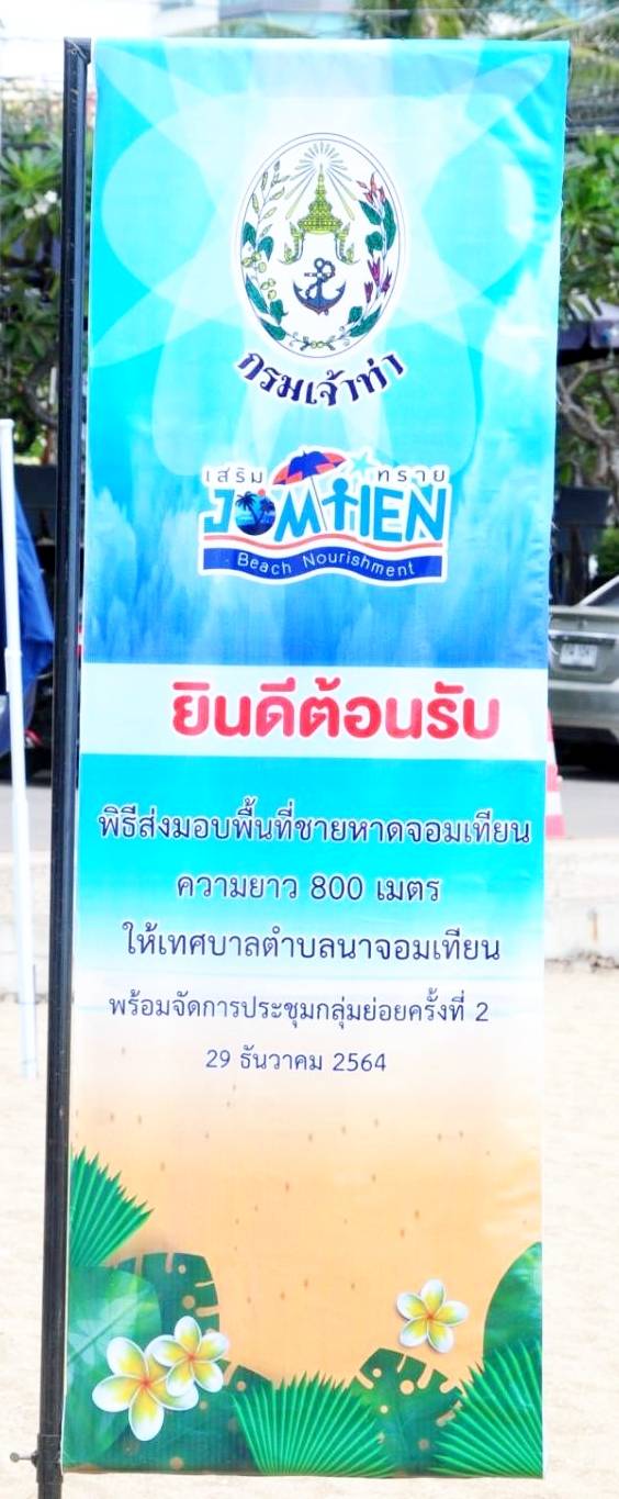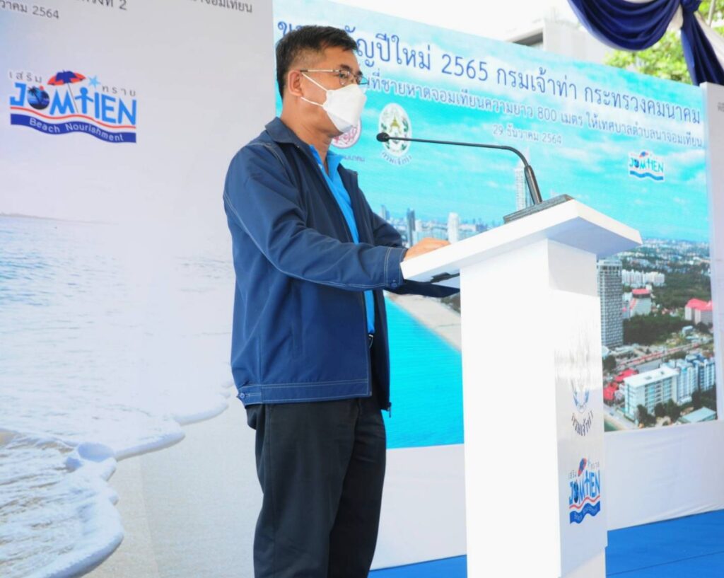 นายสมพงษ์ จิรศิริเลิศ รองอธิบดีกรมเจ้าท่า เปิดเผยว่า กรมเจ้าท่า กระทรวงคมนาคม ซึ่งเป็นหน่วยงานที่มีหน้าที่ความรับผิดชอบโดยตรงต่อการพัฒนาการขนส่งทางน้ำ และดูแลรักษาร่องน้ำและชายหาดของประเทศ ได้ส่งมอบพื้นที่ชายหาดจอมเทียนอำเภอบางละมุง จังหวัดชลบุรี
