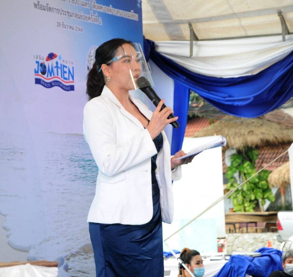 ด้าน นายสมพงษ์ สายนภา นายกเทศมนตรีเทศบาลตำบลนาจอมเทียน ในฐานะเจ้าของพื้นที่ กล่าวเพิ่มเติมว่า โครงการเสริมทรายชายหาดจอมเทียนของกรมเจ้าท่านี้ นับเป็นโครงการที่จะทำให้การท่องเที่ยวของจอมเทียนกลับมาคึกคักอีกครั้ง ด้วยขนาดของชายหาดที่กว้างถึง 51 เมตร จะทำให้เกิดกิจกรรมหน้าชายหาดตามมาอีกมากมาย สามารถใช้ประโยชน์ในธุรกิจการท่องเที่ยว ก่อให้เกิดรายได้ต่อประชาชน และภาคธุรกิจท่องเที่ยวในพื้นที่อย่างต่อเนื่องและยั่งยืน