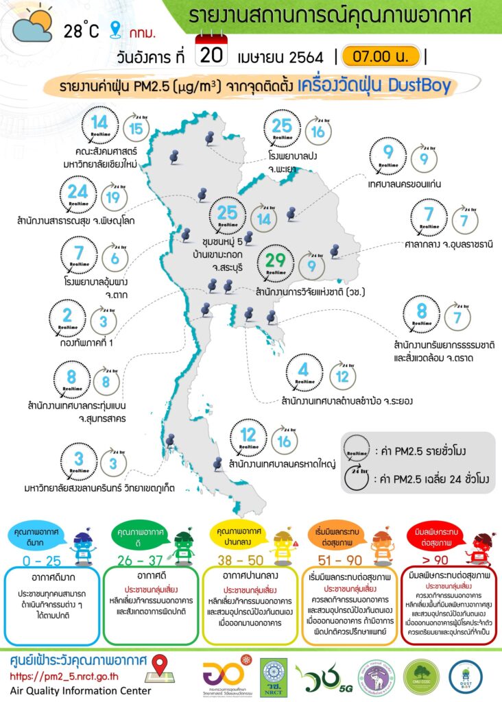 ท่องเที่ยวไทย » รายงานข้อมูลสถานการณ์คุณภาพอากาศ ณ วันอังคารที่ 20 เมษายน 2564