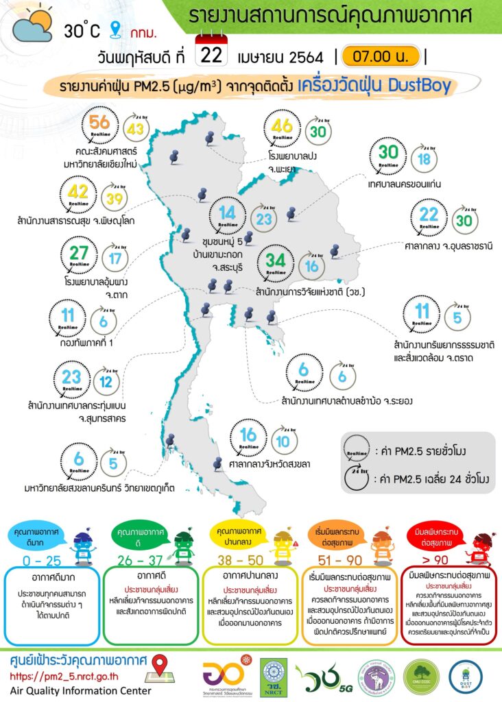 ที่มา : รายงานค่าฝุ่น PM2.5 (ug/m3) จากจุดติดตั้งเครื่องวัดฝุ่น DustBoy