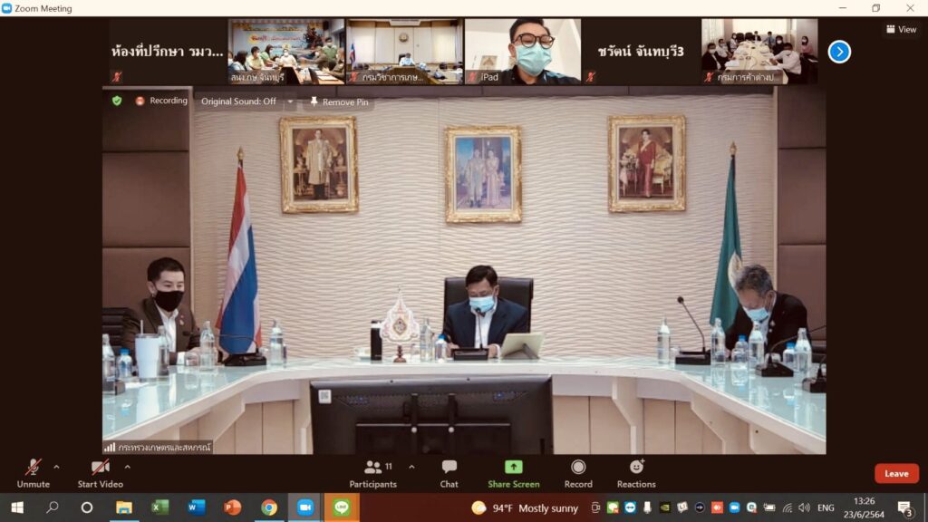ในการประชุมดังกล่าวมีผู้เข้าร่วมประชุมและหน่วยงานต่างๆได้แก่นายเมฆินทร์ เอี่ยมสอาด นายณฐกร สุวรรณธาดา นายยุคล ชนะวัฒน์ปัญญา นายชรัตน์ เนรัญชร คณะที่ปรึกษา รมว.กษ. ผู้แทนกรมส่งเสริมการเกษตรในฐานะฝ่ายเลขานุการคณะกรรมการพัฒนาและบริหารจัดการผลไม้ Fruit Board) และผู้เข้าร่วมการประชุมผ่านระบบ zoom meeting โดยมี นายพิเชษฐ์ วิริยะพาหะ อธิบดีกรมวิชาการเกษตร นายสุธี ทองแย้ม ผู้ว่าราชการ จ.จันทบุรี พ.ต.อ.คณกร อัศวเมธี ผู้กำกับการ สภ.เมือง (แทน ผบก.จว.จันทบุรี) นางปัทมา นามวงษ์ เกษตรจังหวัดจันทบุรี น.ส.ธารารัตน์ โพธิ์ศรี กษ.จว.จันทบุรี และนายชลธี นุ่มหนู ผอ.สำนักวิจัยและพัฒนาการเกษตร เขต 6 นายพีรพัฒก์ อุทัยศรี ผู้อำนวยการกองสำนักบริการการค้าต่างประเทศ กรมการค้าต่างประเทศ กระทรวงพาณิชย์ ผู้แทนกรมสอบสวนคดีพิเศษ และผู้แทนกรมศุลกากร ร่วมกันหารือการดำเนินคดีกรณีการจับกุมขบวนการลักลอบนำเข้าทุเรียนจากประเทศเวียดนามมาสวมสิทธ์ทุเรียนจันทบุรีส่งออกไปจีน