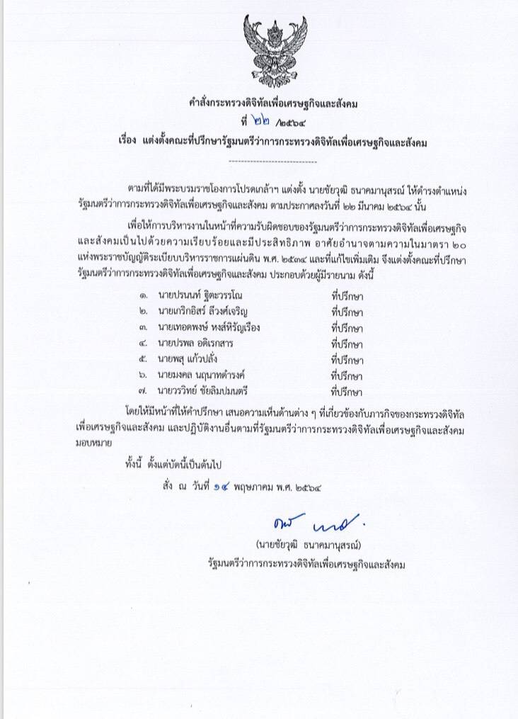 คุณกิตติ ได้รับการแต่งตั้งเป็น คณะที่ปรึกษารัฐมนตรีว่าการกระทรวงดิจิทัลเพื่อเศรษฐกิจและสังคม ………