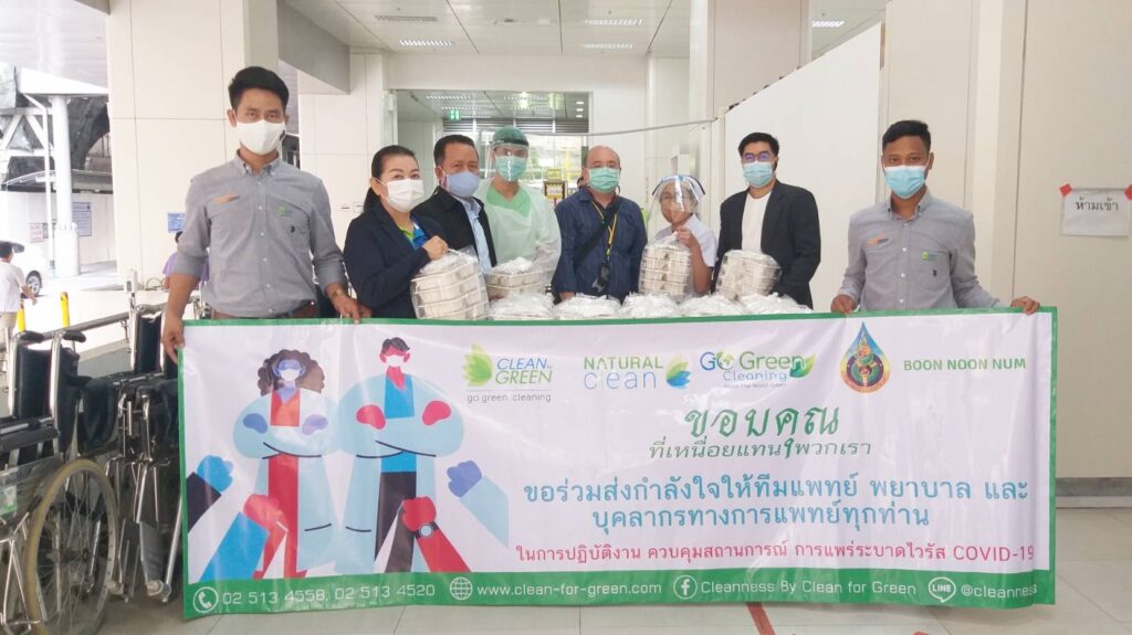 นายกมลเดช เอมสวนะ ผู้อำนวยการฝ่ายบริหาร บจ.คลีน ฟอร์ กรีน พร้อมด้วย นายนครพจน์ ปิ่นมิ่ง ผู้บริหาร บจ.บุญหนุนนำ มาร่วมมอบข้าวมันไก่ของร้านนายแม่ด้วย จำนวน 100 ชุด ให้กับ ทีมแพทย์ พยาบาล และบุคลากรทางการแพทย์ รพ.ศิริราช เพื่อร่วมส่งกำลังใจ ในการปฏิบัติงาน ควบคุมสถานการณ์ การแพร่ระบาดเชื้อไวรัคโควิค 19 โดยมี นายแพทย์เอกพันธ์ ครุพงศ์ อาจารย์แพทย์ผู้เชี่ยวชาญ ด้านโลหิตวิทยา น.ส.อุษณีย์ ฟองศรี ผู้ตรวจการพยาบาล เป็นผู้รับมอบ ณ อาคารนวมินทรบพิตร รพ.ศิริราช เมื่อวันก่อน