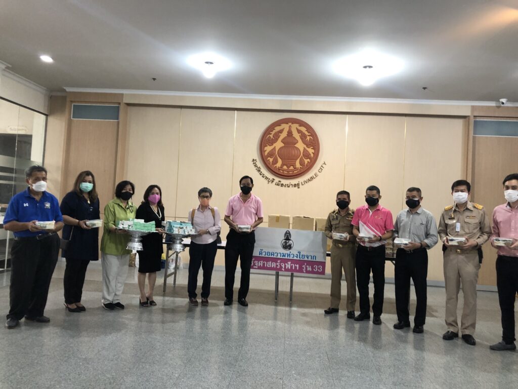 เมื่อวันที่ 10 กันยายน 2564 ดร.สุจินต์ ไชยชุมศักดิ์ ผู้ว่าราชการจังหวัดนนทบุรี ได้รับมอบเครื่องอุปโภค บริโภคประกอบด้วย ข้าวกล่อง เครื่องวัดออกซิเจน ปรอทวัดไข้ และอื่นๆ จากคณะศิษย์เก่ารัฐศาสตร์จุฬาลงกรณ์มหาวิทยาลัย รุ่นที่ 33 เพื่อนำไปช่วยเหลือผู้ประสบภัยจาก COVID-19 ในจังหวัดนนทบุรี