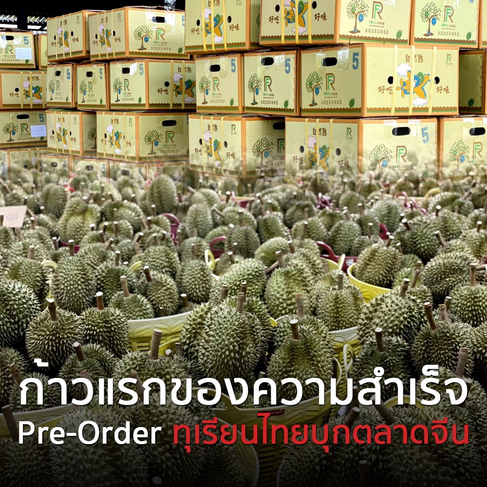 ขณะที่ คุณอรทัย เอื้อตระกูล อดีตผู้เชี่ยวชาญด้านระบบนำเข้า-ส่งออกสินค้าพืชและปัจจัยการผลิต กรมวิชาการเกษตร กล่าวว่า การจำหน่ายผลไม้ไทย ผ่านระบบออนไลน์แบบ Pre-Order ถือเป็นโอกาสที่ดีที่เราจะสามารถสร้างแบรนด์ผลไม้ไทย และส่งขายผลไม้ไทยได้มากยิ่งขึ้นกับในช่วงที่เกิดโรคระบาดโควิดนี้ แต่หัวใจสำคัญคือระบบโลจิสติกส์ที่จะต้องสอดประสานและเป็นสะพานในการเชื่อมต่อระหว่างสินค้าจากเกษตรกรไทยของเรา พี่น้องชาวไร่ ชาวสวนให้สามารถส่งขายสินค้าไปยังปลายทาง โดยเฉพาะตลาดต่างประเทศที่มีบริษัทฯ กลางมารับซื้อและจัดจำหน่ายผ่านการ Pre-Oder ซึ่งวันนี้เราได้เริ่มจัดส่งทุเรียนออกขายที่เมืองจีน ผ่านระบบการขนส่งโดยเครื่องบิน ซึ่งถือว่าดีมากเพราะช่วยในเรื่องของการรับประกันคุณภาพทุเรียนได้เมื่อส่งถึงมือผู้บริโภค หรือตลาดตามที่เราได้กำหนดไว้ แต่การจัดส่งโดยเครื่องบินก็มีราคาขนส่งที่แพงในระดับหนึ่ง ถ้ามีช่องทางการขนส่งในราคาไม่แพงมากจนเกินไป ก็จะส่งผลดีต่อการขายทุเรียนและผลไม้ไทยอื่น ๆ ได้อย่างมาก