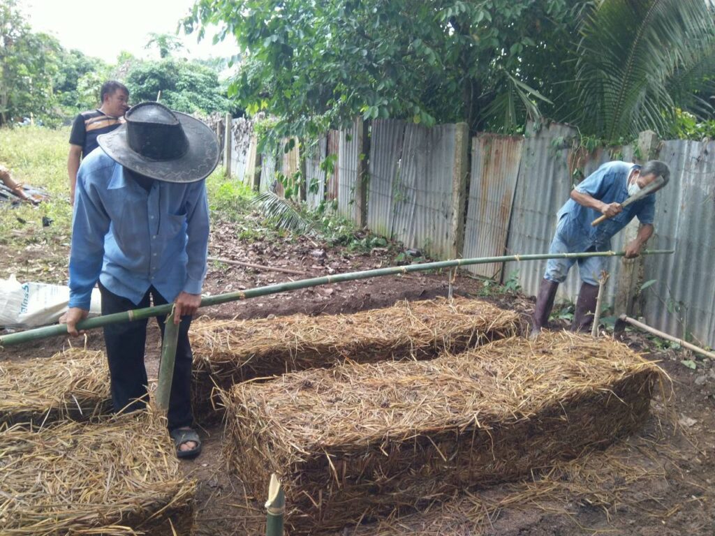 สำหรับกิจกรรมการเอามื้อสามัคคี ในวันนี้ เป็นการพัฒนา สร้างความรู้ ความเข้าใจ วิถีแห่งความพอเพียง ให้ประชาชนเกิดการยอมรับและน้อมนำไปปฏิบัติ ผลประโยชน์ที่จะเกิดขึ้นอย่างชัดเจน นั้น คือ การสร้างพลังแห่งความสมานสามัคคี เอื้ออาทรให้เกิดขึ้นในชุมชน ท้องถิ่น และการเพิ่มทักษะการดำเนินชีวิตในรูปแบบการเรียนรู้ผ่านการลงมือทำจริงทุกขั้นตอน โดยใช้กระบวนการ “ฐานคนหัวเห็ด” การเพาะเห็ดฟาง 2 รูปแบบ ประกอบด้วย 1) การเพาะเห็ดฟางแบบกองเตี้ย เพื่อจัดทำเป็นแปลงสาธิตภายในศูนย์เรียนรู้ทฤษฎีใหม่ รูปแบบ “โคก หนอง นา” ประชาชนในหมู่บ้านสามารถเข้ามาเรียนรู้ได้ ซึ่งการเพาะเห็ดฟางแบบกองเตี้ยเป็นวิธีที่ง่ายและได้รับความนิยมกันมาก เนื่องจากเป็นวิธีที่ ประหยัดวัสดุเพาะเห็ด ใช้ระยะเวลาเพาะสั้น จึงสามารถเพาะได้ทุกฤดูกาล ปกติแล้วเกษตรกรจะเพาะในฤดูหลังนา เพราะมีฟางข้าว และตอซัง เป็นวัสดุเพาะ เพื่อเป็นการเพิ่มมูลค่าวัสดุที่เหลือใช้จากครัวเรือนและการเกษตร มาให้เกิดประโยชน์เป็นการเพิ่มแหล่งอาหารและเพิ่มรายได้อีกทางหนึ่งด้วย และ 2) การเพาะเห็ดฟางในตะกร้า ที่เป็นรูปแบบการเพาะเห็ดฟางที่ประยุกต์ใช้ตะกร้าพลาสติกเป็นโครงสร้างของกองวัสดุเพาะ เหมาะสำหรับการเพาะเห็ดฟางในพื้นที่ที่จำกัด โดยเฉพาะผู้ที่ไม่มีแปลงไร่นา มีพื้นที่น้อย หรือผู้ที่อยู่ในชุมชนเมือง โดยผลงานความร่วมมือเพาะเห็ดฟางในรูปแบบที่ 2 นี้ จะมอบให้ครัวเรือนเป้าหมายที่เข้าร่วมโครงการ เป็นดังจุดเริ่มต้นเพื่อเป็นต้นแบบที่ดี สร้างความมั่นคงทางอาหาร สู้กับวิกฤตการณ์ การแพร่ระบาดของโรคติดเชื้อไวรัสโคโรนา 2019 (COVID-19) ระลอกใหม่ และขยายผลสู่ทุกครัวเรือนต่อไป”
