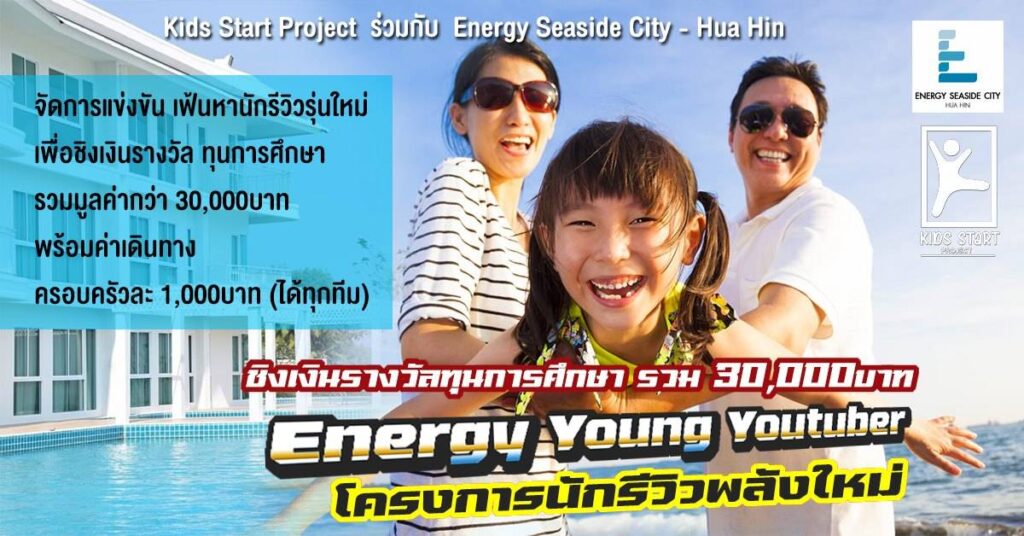 Kids Start Project ร่วมกับ Energy Seaside City – Hua Hin จัดการแข่งขัน เฟ้นหานักรีวิวรุ่นใหม่ เพื่อชิงเงินรางวัล ทุนการศึกษา รวมมูลค่ากว่า 30,000.- บาท