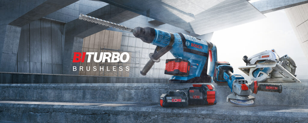 BITURBO คือนวัตกรรมใหม่สำหรับเครื่องมือไฟฟ้าไร้สายบ๊อชที่ให้ประสิทธิภาพสูงสุดในการทำงานแบบมืออาชีพอย่างแท้จริงโดยผสานสองขุมพลัง มอเตอร์ไร้แปรงถ่านประสิทธิภาพสูง(Brushless Motor) ที่ผลิตจากแม่เหล็กนีโอไนเดียมคุณภาพสูง ทนทาน ให้กำลังสูงสุดถึง 1,800 วัตต์ เทียบเท่าเครื่องมีสายประเภทงานหนัก ผสานเข้ากับ ProCORE18V แบตเตอรี่ที่ให้กำลังตัวเครื่องได้เพิ่มขึ้นกว่า 87% ด้วยเทคโนโลยีเซลล์แบตเตอรี่ใหม่ที่มาพร้อมระบบจัดการพลังงานอัจฉริยะเทคโนโลยี COOL PACK 2.0 ที่จะช่วยคลายความร้อนที่เกิดจากการใช้งานได้ดียิ่งขึ้นและเพิ่มอายุการใช้งานแบตเตอร์รี่ได้มากถึง135% เอกสิทธิ์หนึ่งเดียวจากบ๊อชเท่านั้น