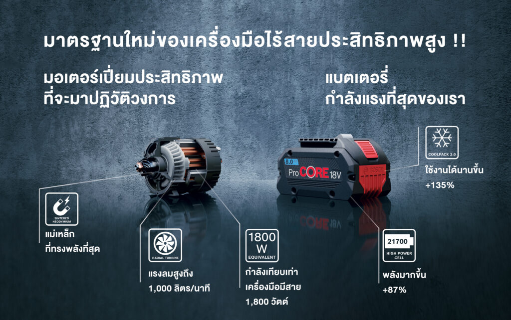 ชูเทคโนโลยีมอเตอร์ไร้แปรงถ่านประสิทธิภาพสูงเอกสิทธิ์หนึ่งเดียวจากบ๊อช