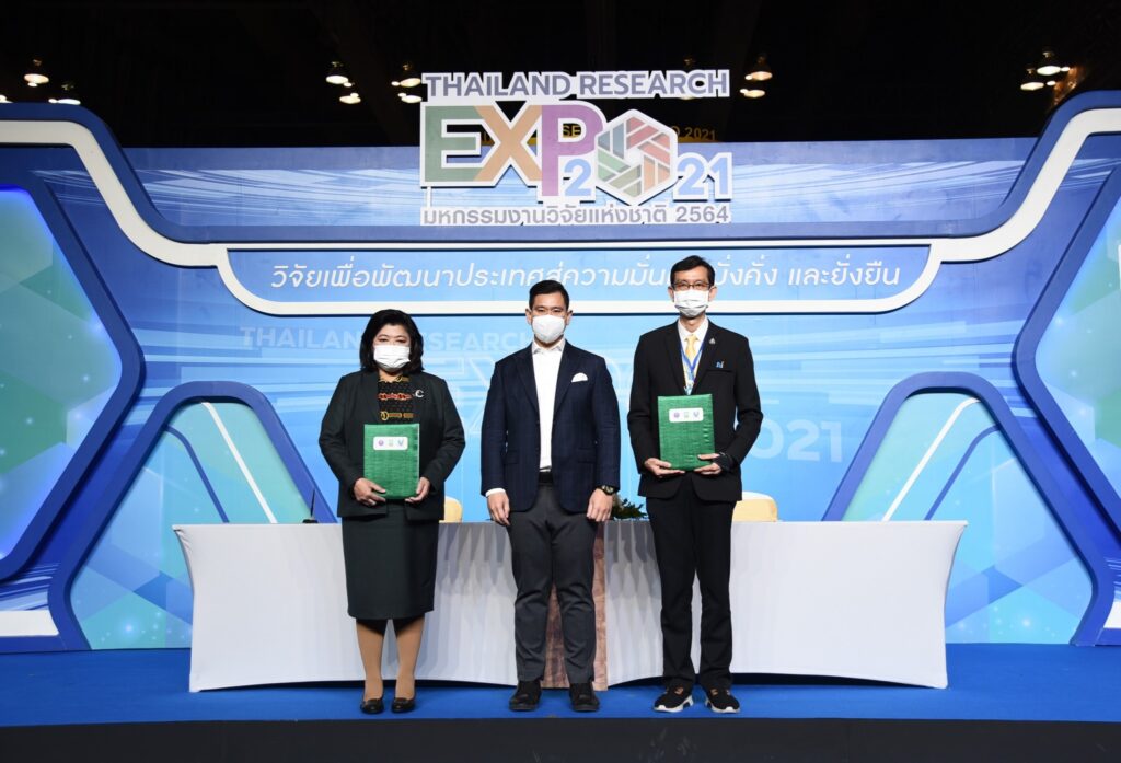 ในงานมหกรรมงานวิจัยแห่งชาติ 2564 (Thailand Research Expo 2021) โรงแรมเซ็นทาราแกรนด์และบางกอกคอนเวนชันเซ็นเตอร์ เซ็นทรัลเวิลด์ กรุงเทพมหานคร โดยมีรองศาสตราจารย์พิเศษ ดร.ดวงฤทธิ์ เบ็ญจาธิกุล ชัยรุ่งเรือง เลขานุการรัฐมนตรีว่าการและโฆษกกระทรวงการอุดมศึกษา วิทยาศาสตร์ วิจัยและนวัตกรรม (อว.) เป็นประธานและสักขีพยาน และกล่าวว่า ในนามตัวแทน อว.ขอบคุณทุกหน่วยงานไม่ว่าจะเป็นภาครัฐหรือเอกชนร่วมมือกัน หลายสิ่งที่หวังว่าจะประสบความสำเร็จเชื่อว่าจะสำเร็จอย่างแน่นอนในการทำงานวิจัยให้ออกมาเป็นประโยชน์กับประชาชนจริงๆด้วยงานวิจัยและนวัตกรรม