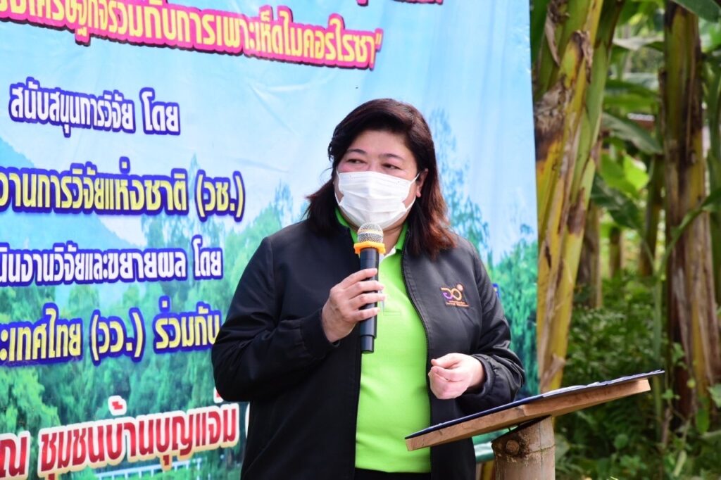 ด้าน ดร.วิภารัตน์ ดีอ่อง ผู้อำนวยการสำนักงานการวิจัยแห่งชาติ กล่าวว่า สำนักงานการวิจัยแห่งชาติ (วช.) ภายใต้กระทรวงการอุดมศึกษา วิทยาศาสตร์ วิจัยและนวัตกรรม(อว.) ได้รับมอบหมายให้เป็นหน่วยงานหลัก รับโจทย์และสนับสนุนการบูรณาการการขับเคลื่อน โครงการชุมชนไม้มีค่า ตามมติคณะรัฐมนตรี ในการส่งเสริมให้เกษตรกรปลูกไม้มีค่า เพื่อสร้างแหล่งอาหารและพัฒนาเศรษฐกิจชุมชนอย่างยั่งยืน โดย วช. ได้นำองค์ความรู้ เทคโนโลยีและนวัตกรรมมาช่วยสนับสนุน และขยายผลให้นักวิจัยทำงานร่วมกับพื้นที่ และหน่วยงานอื่น ๆ ดำเนินการในรูปแบบให้เกิดกล้าไม้ ขยายผลให้มีพืชทางเลือกภายใต้ร่มเงาไม้มีค่า ซึ่งการเพาะเห็ดไมคอร์ไรซาเป็นหนึ่งในความเชี่ยวชาญของนักวิจัย จาก วว. ผสานการทำงานร่วมกับพี่น้องเกษตรกร โดยใช้ต้นทุนไม่สูง เป็นอาชีพที่เกษตรกรคุ้นเคย มีมูลค่าทางการตลาดสูง อีกทั้ง พื้นที่ชุมชนบ้านบุญแจ่มแห่งนี้ยังมีความเหมาะสมกับการเพาะปลูกเห็ดดังกล่าวอีกด้วย