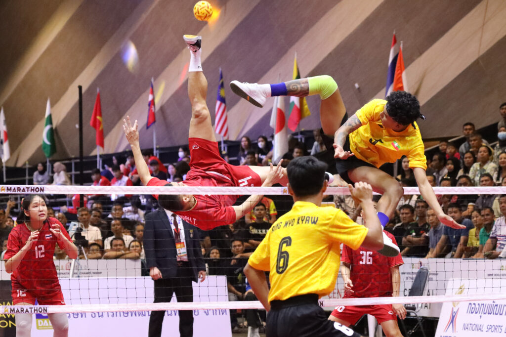 ด้านตะกร้อ4 คน ทีมผสม ทีมชาติไทย แชมป์เก่า ชุดสีแดง ประกอบไปด้วย เสกสรรค์ ทับทอง, ทวีศักดิ์ ทองสาย, มัสยา ดวงศรี และ วิภาดา จิตรพรวน โดยมี ภูตะวัน โสภา และ พัชลิน หนุนกลาง เป็นเล่นสำรอง พบกับ เมียนมาร์ ซึ่งคู่นี้เจอกันมาในรอบแบ่งกลุ่ม ไทยชนะมา 2-0 เซต